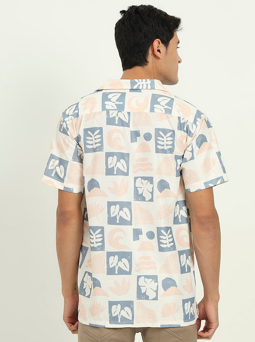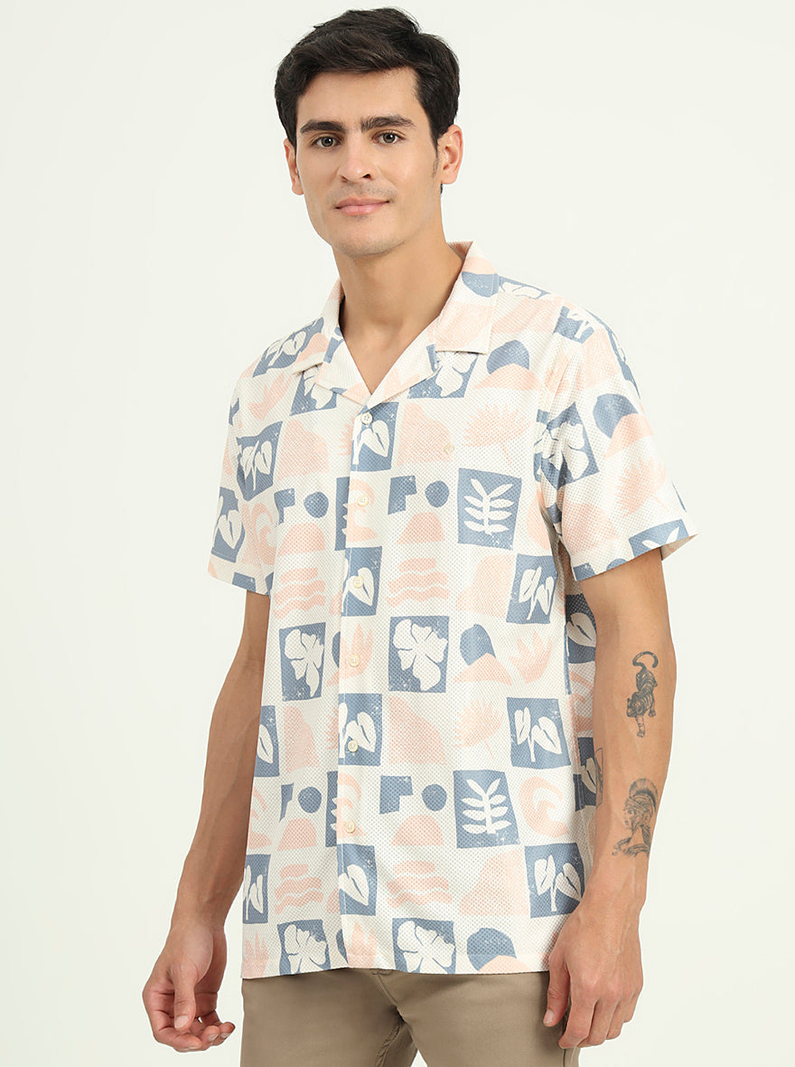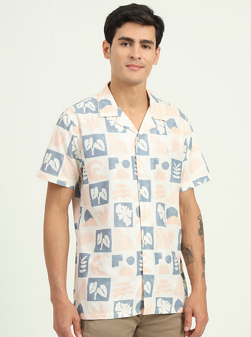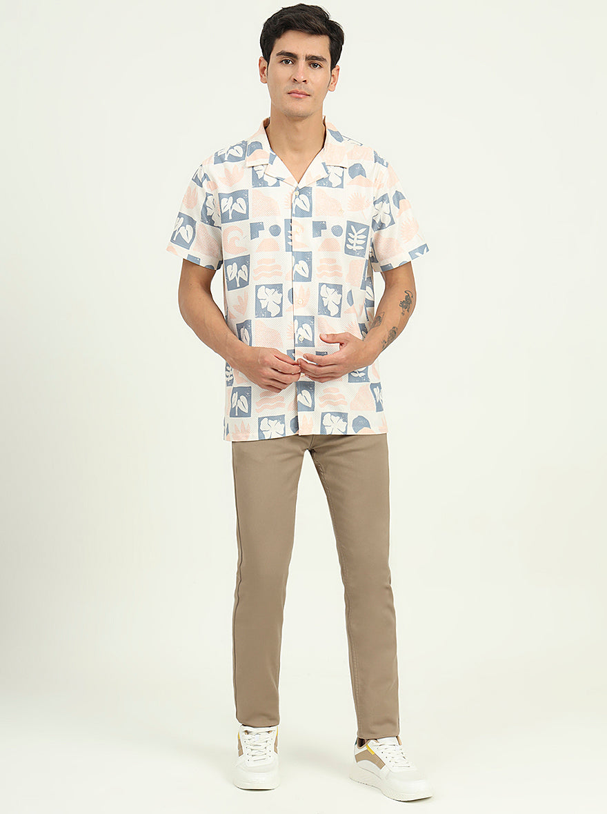 Cream Printed Slim Fit Casual Shirt | Greenfibre