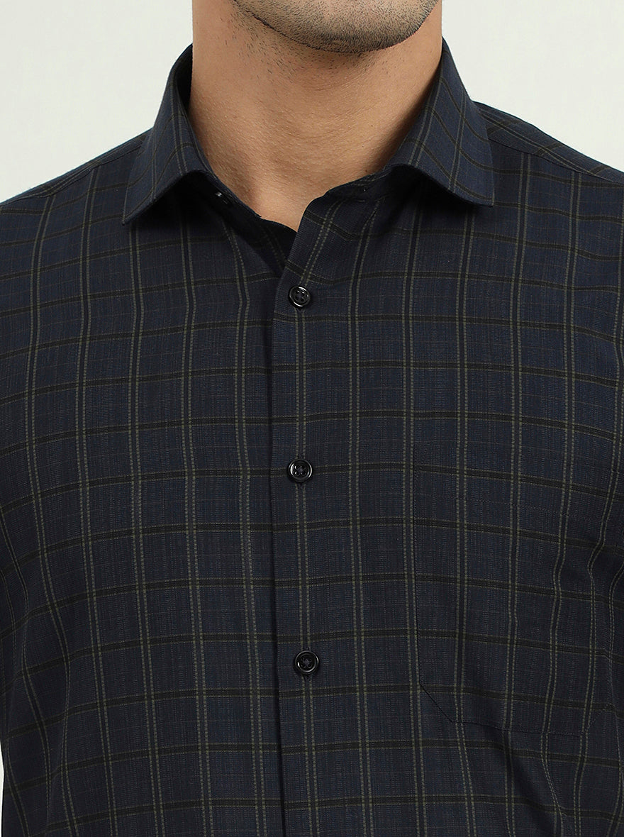 Dark Blue & Green Checked Regular Fit Formal Shirt | Greenfire