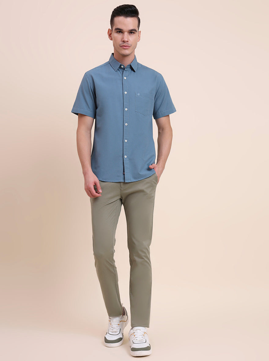 Dark Blue Solid Slim Fit Casual Shirt | Greenfibre