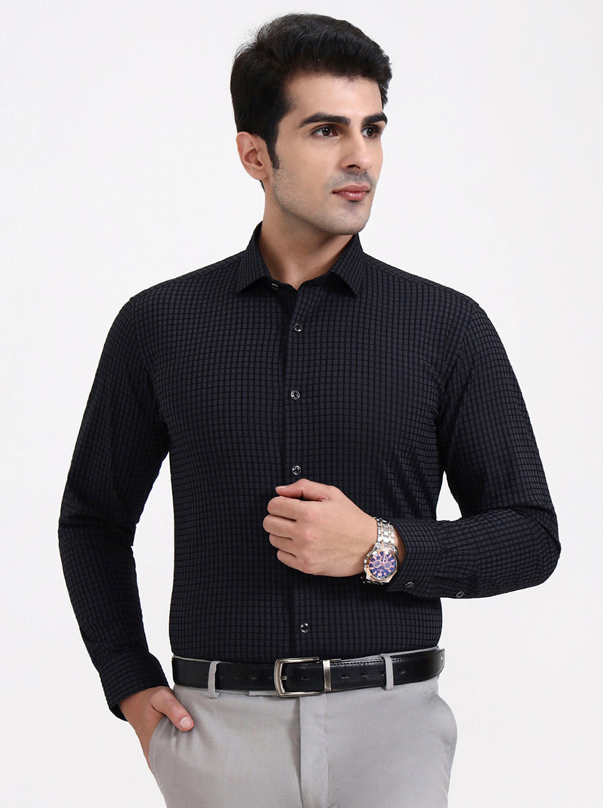 Dark Grey Checked Slim Fit Party Wear Shirt | Greenfibre