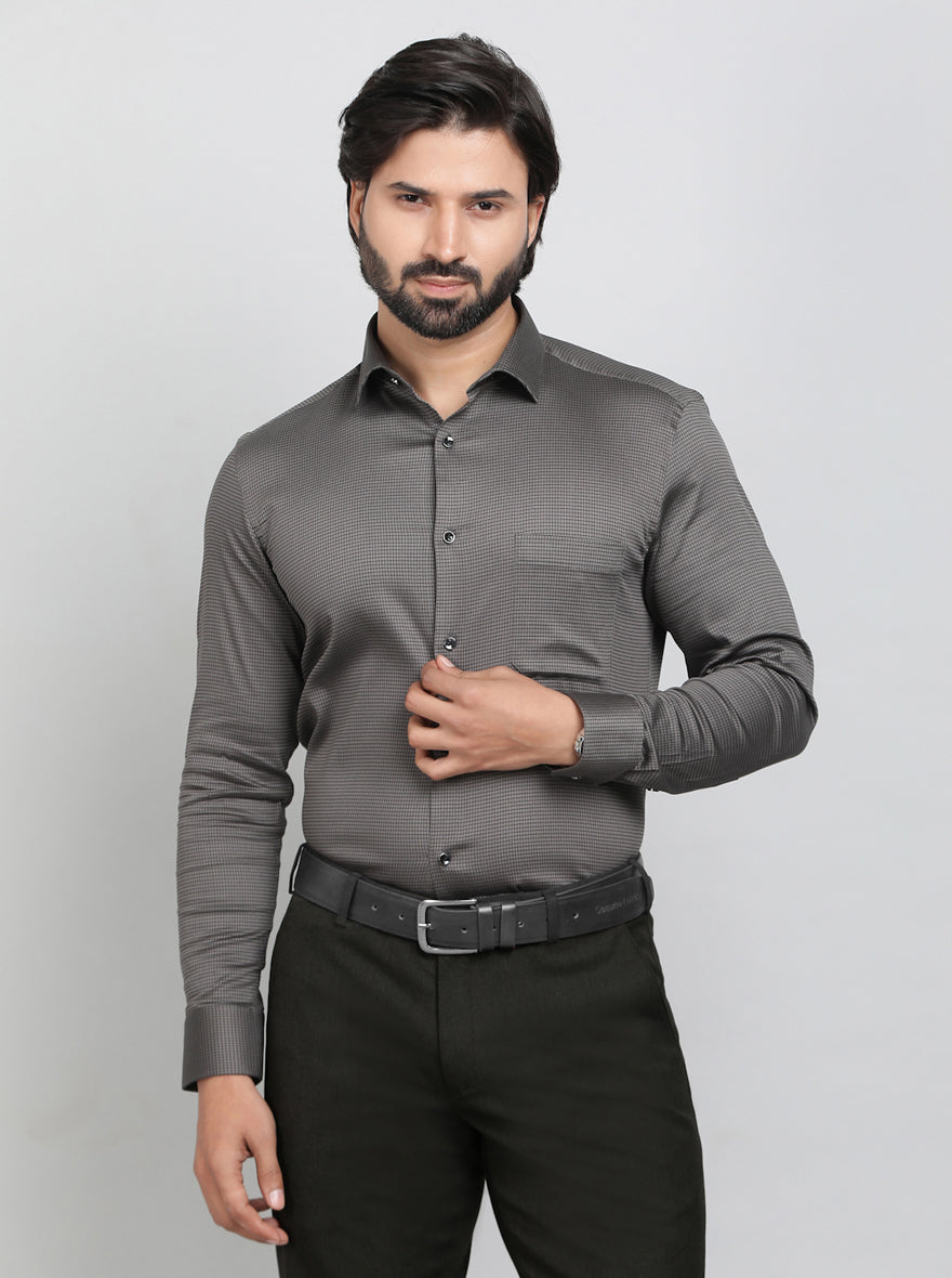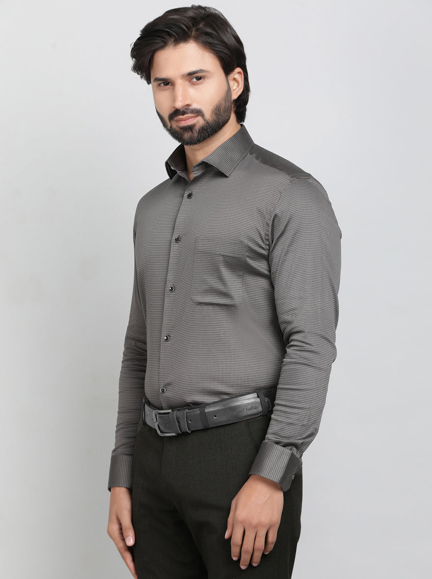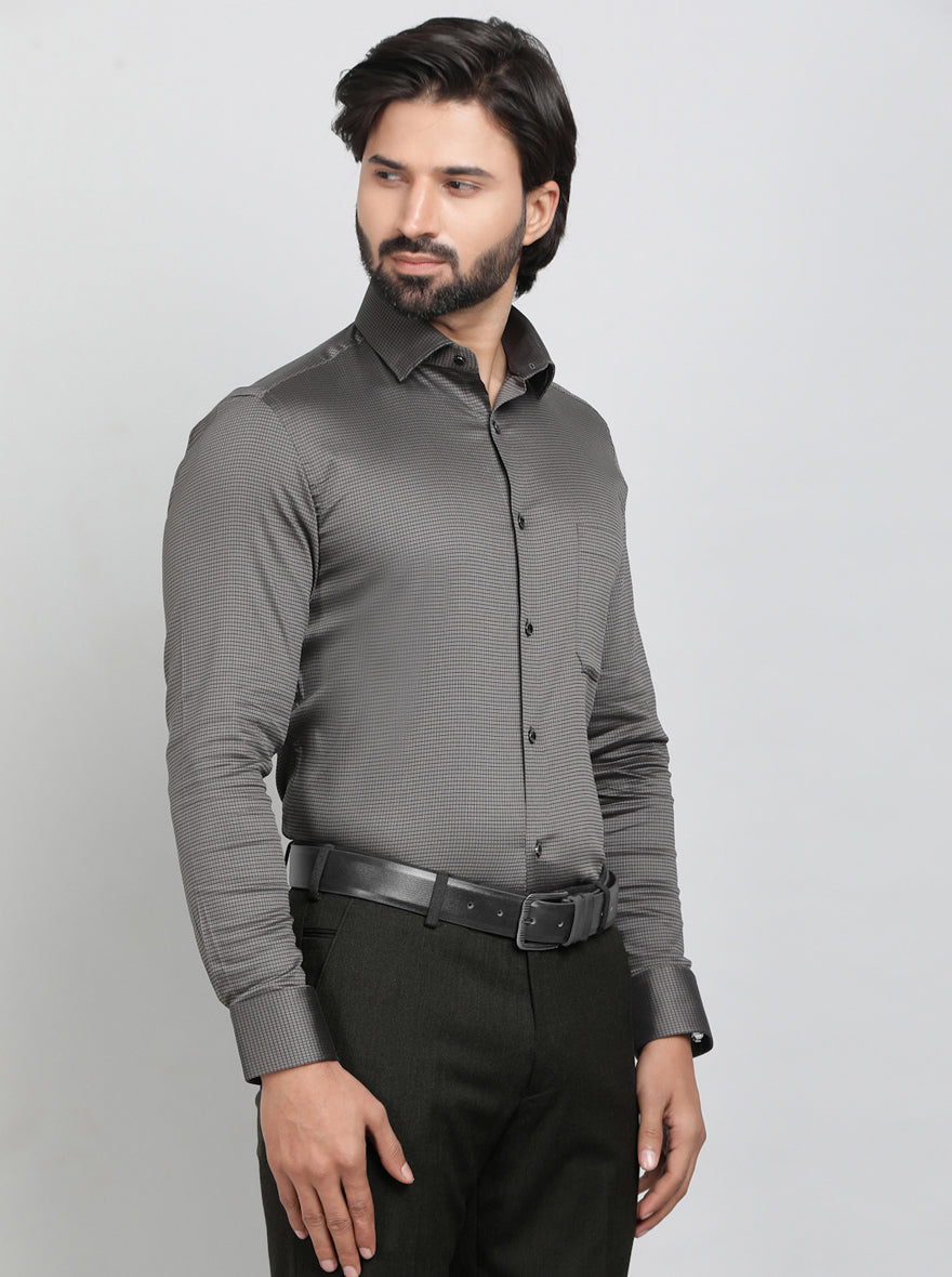 Dark Grey Checked Slim Fit Party Wear Shirt | Greenfibre