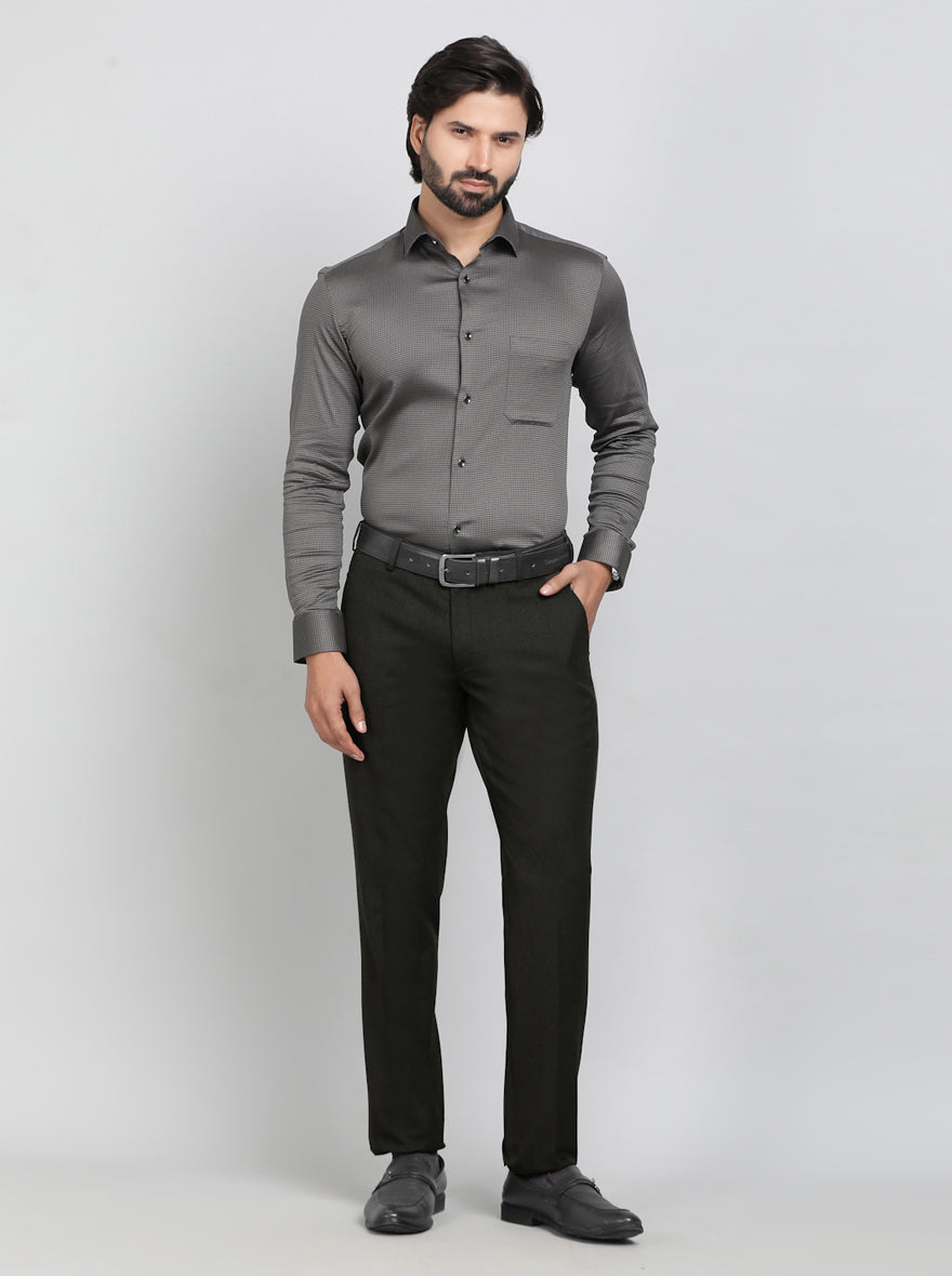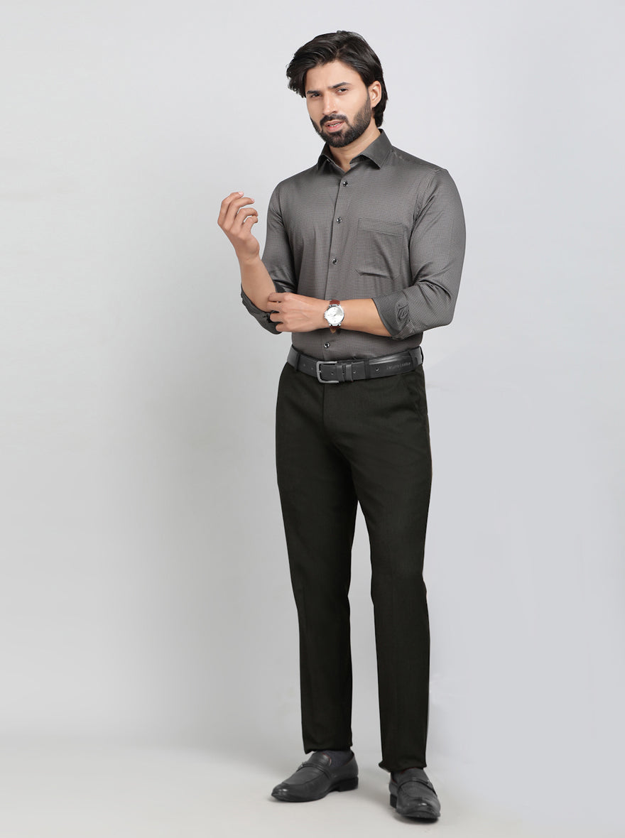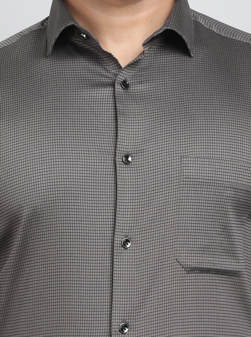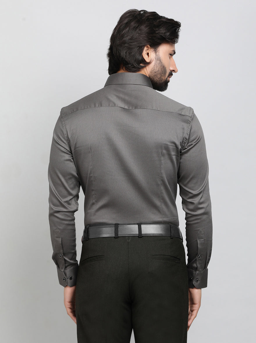 Dark Grey Checked Slim Fit Party Wear Shirt | Greenfibre