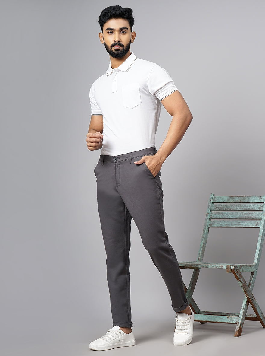 Dark Grey Dobby Neo Fit Casual Trouser | Greenfibre