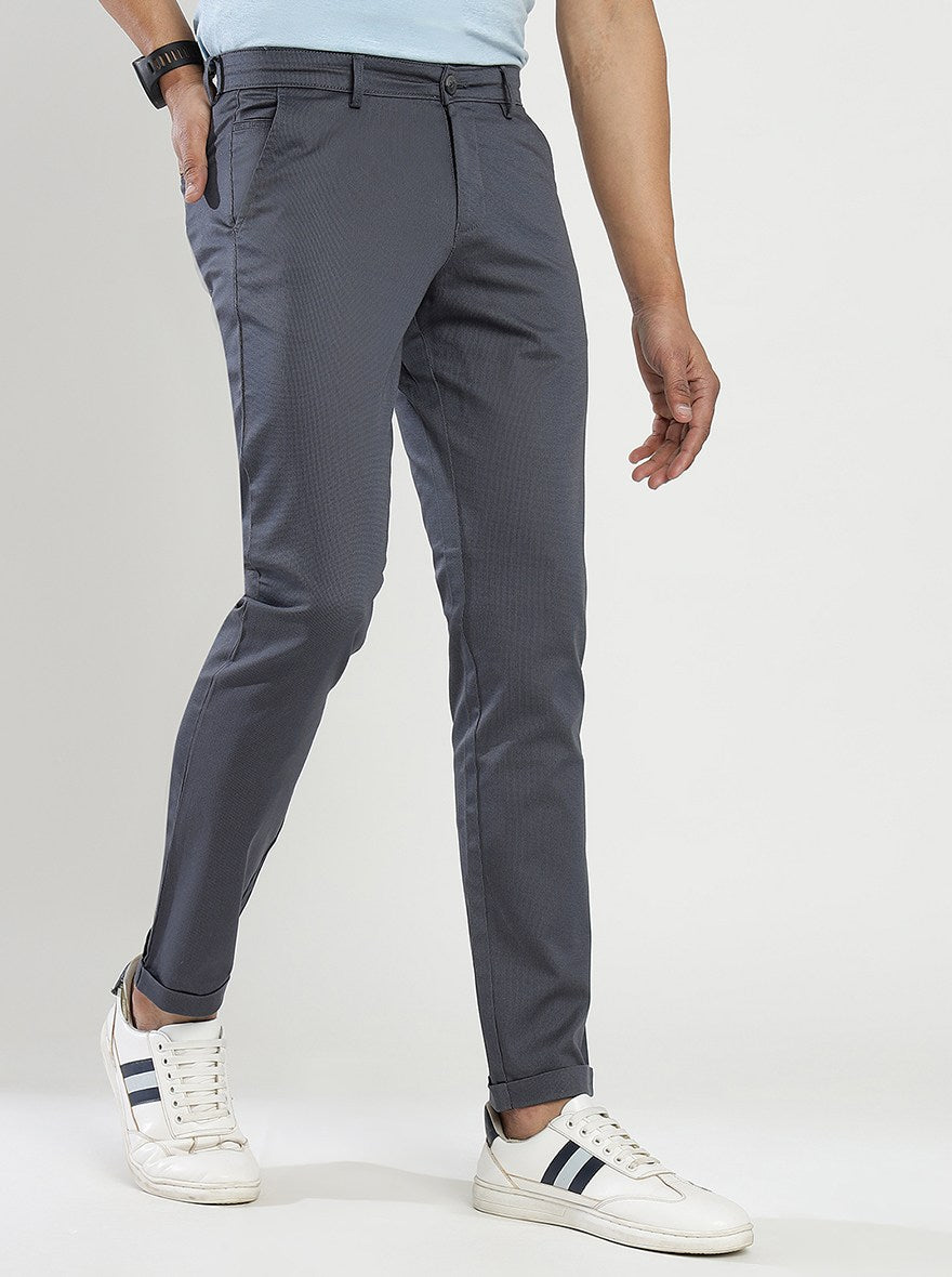 Dark Grey Solid Neo Fit Casual Trouser | Greenfibre