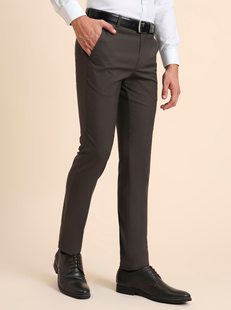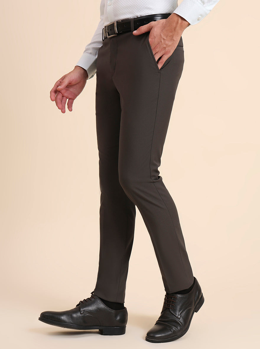 Dark Grey Solid Super Slim Fit Formal Trouser | Greenfibre