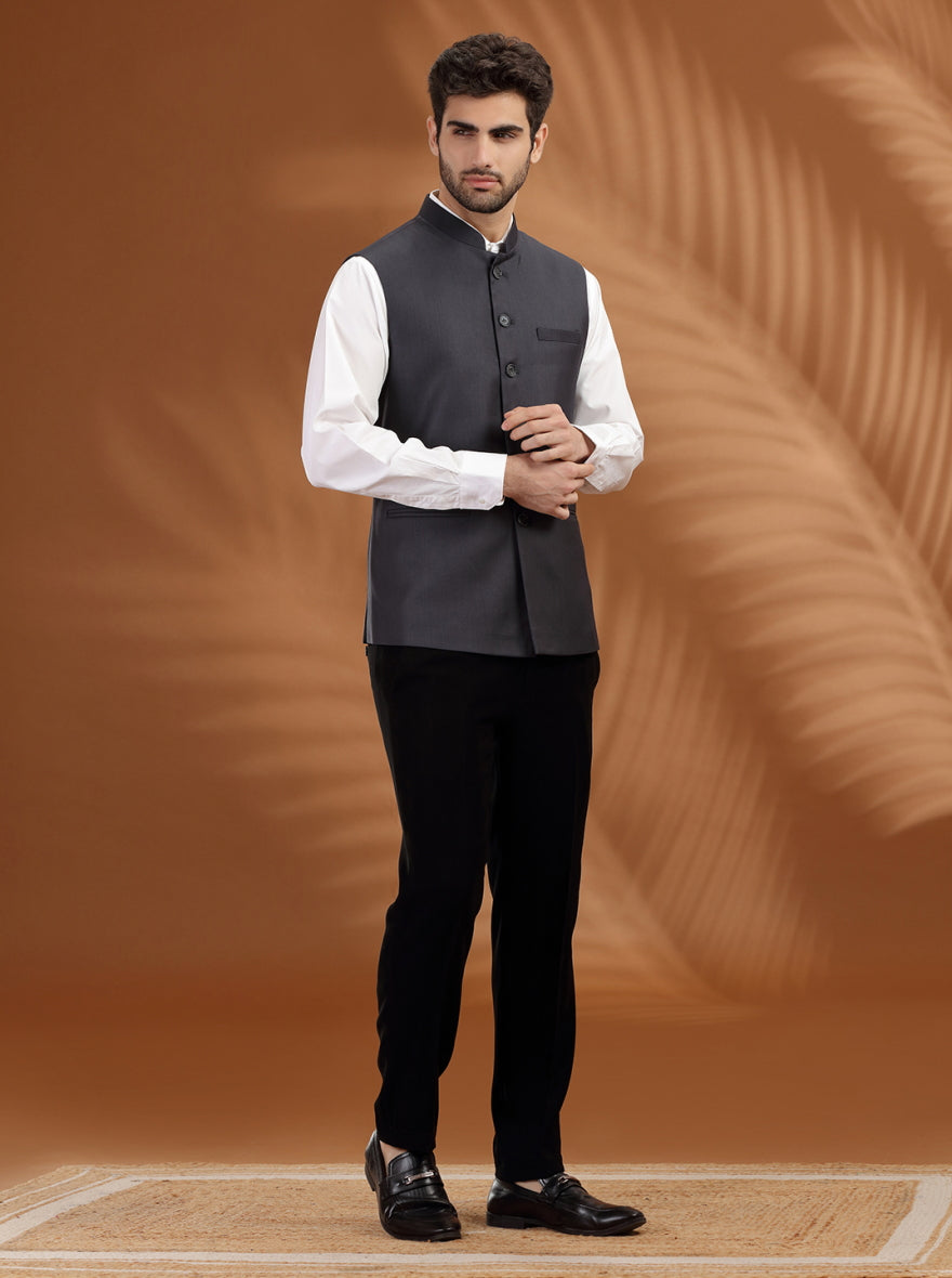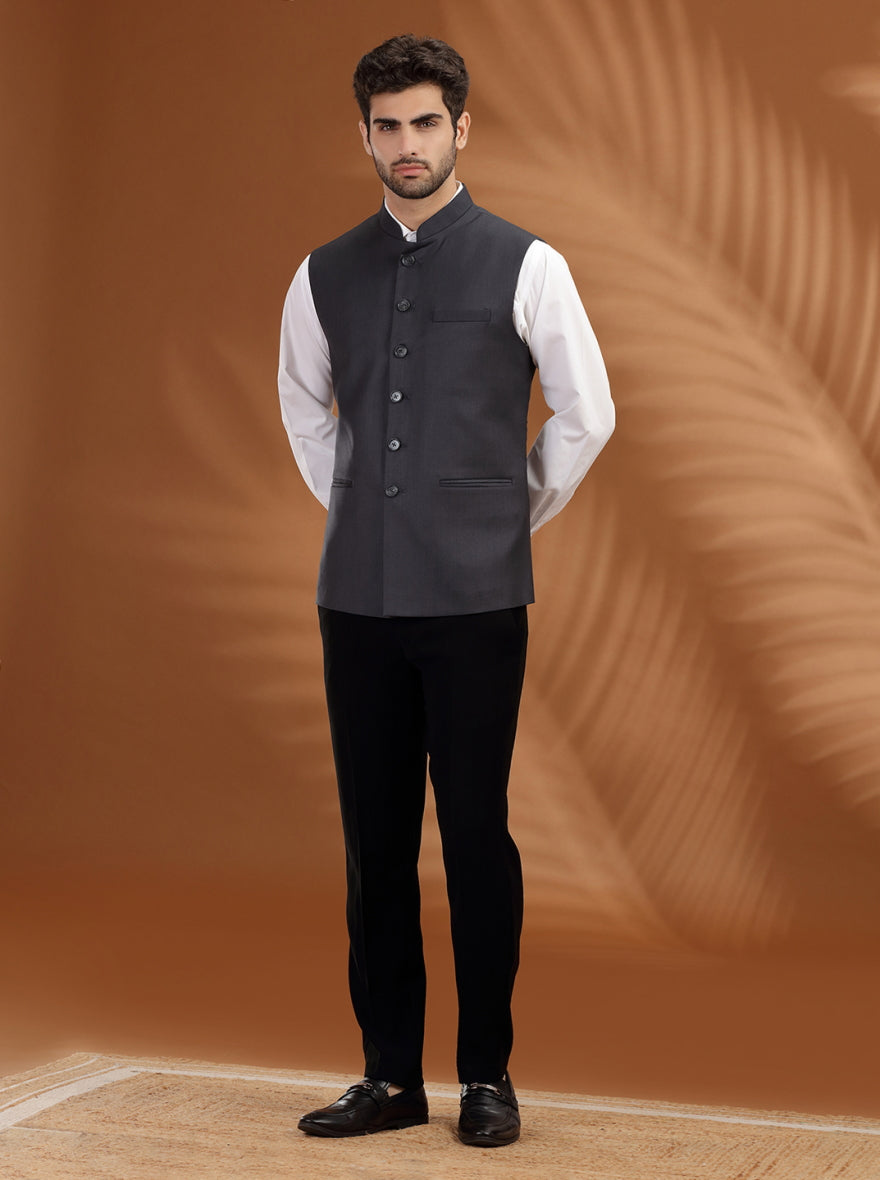 Dark Grey Solid Waist Coat | Greenfibre