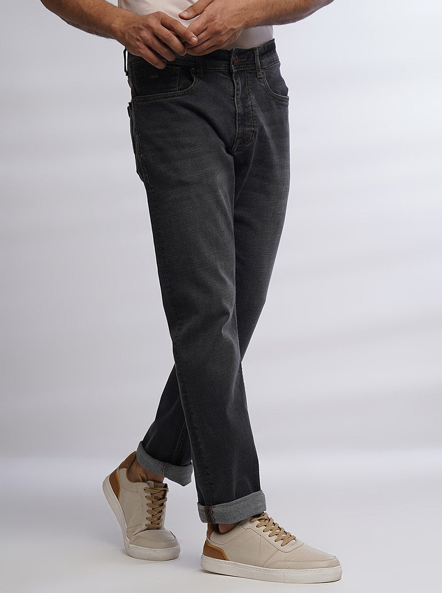 Dark Grey Washed Straight Fit Jeans | Greenfibre