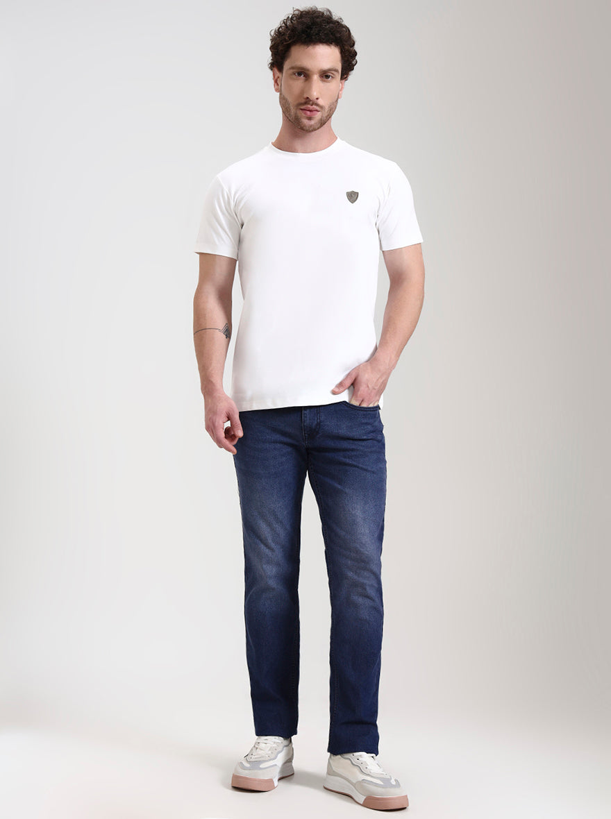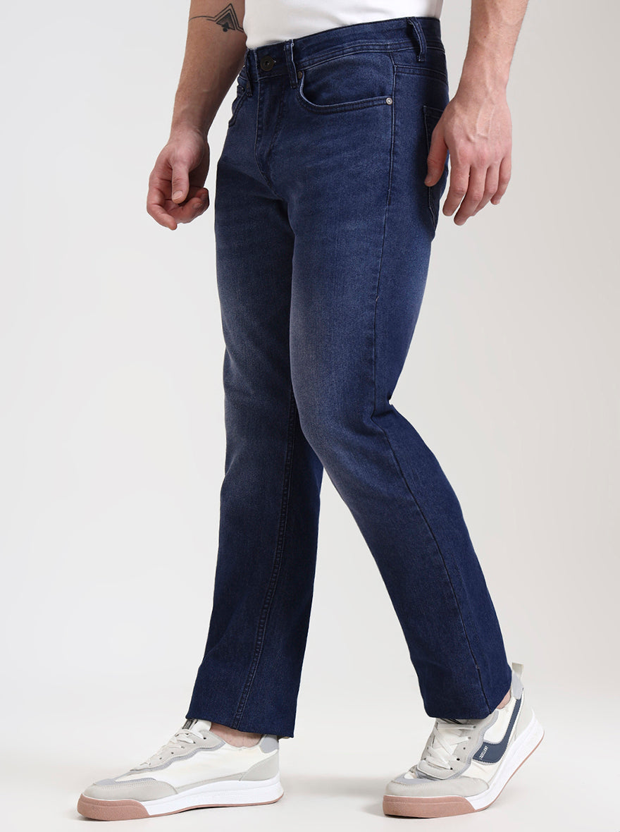 Dark Indigo Blue Washed Straight Fit Jeans | Greenfibre