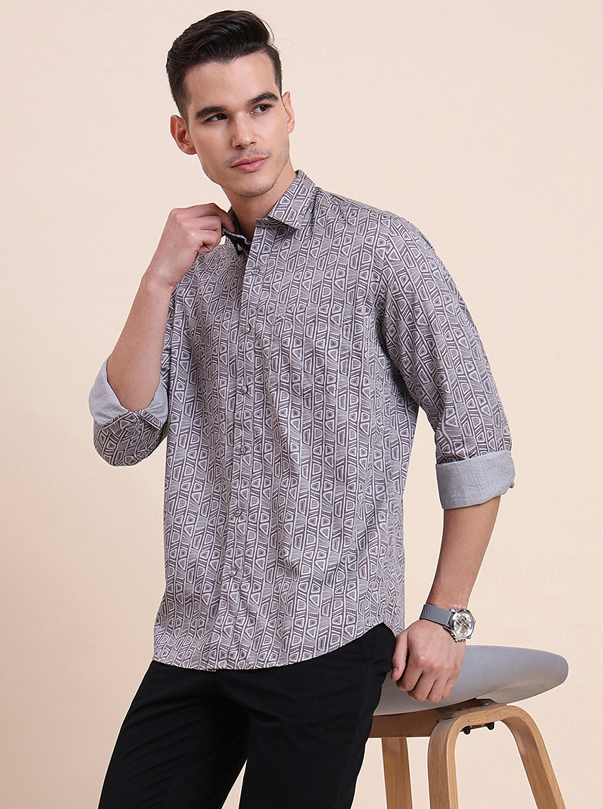 Dark Purplr Printed Smart Fit Semi Casual Shirt | Greenfibre