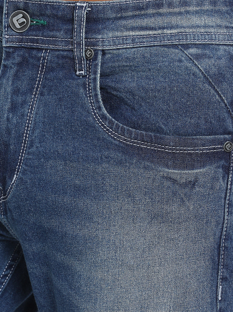 Details: Let these Denim Blue Jeans from the latest collection of Greenfibre help you to become a style icon. Crafted with high-quality Cotton Stretch Denim fabric promising exceptionally high stretchability and breathability. Offers a Narrow fit for a sleek look which has been elevated with a washed pattern. Match it with a solid shirt of your choice and a pair of canvas for an iconic look.