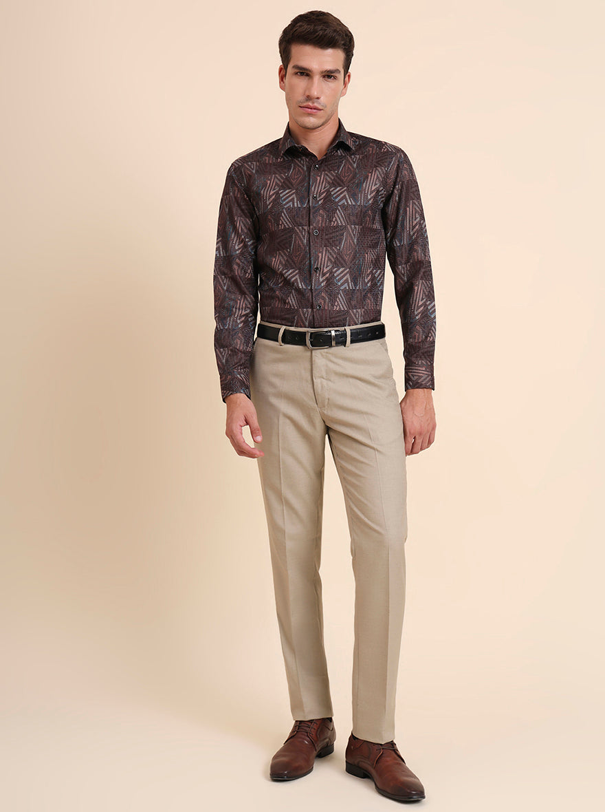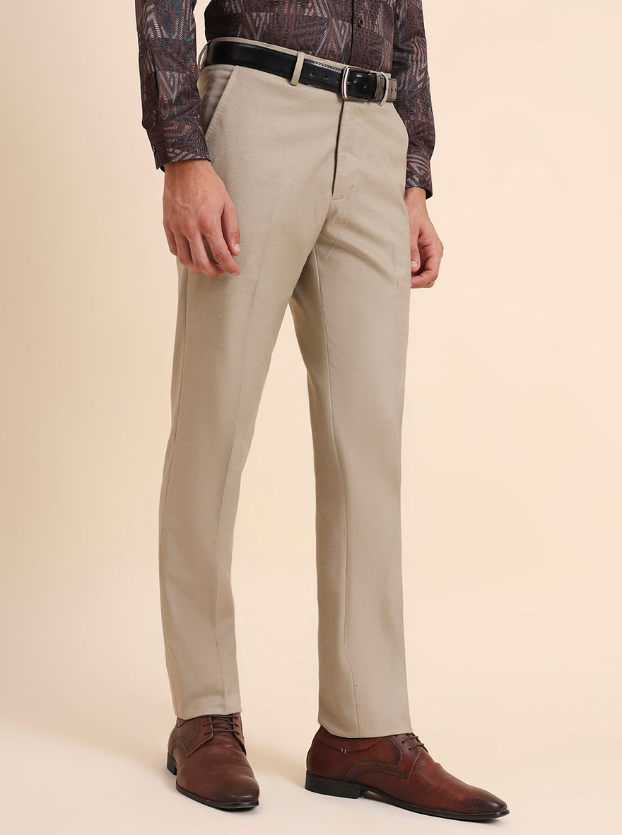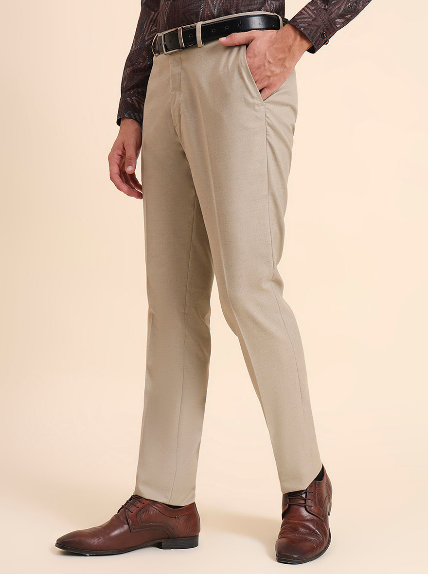 Fawn Solid Slim Fit Formal Trouser | GreenFiber