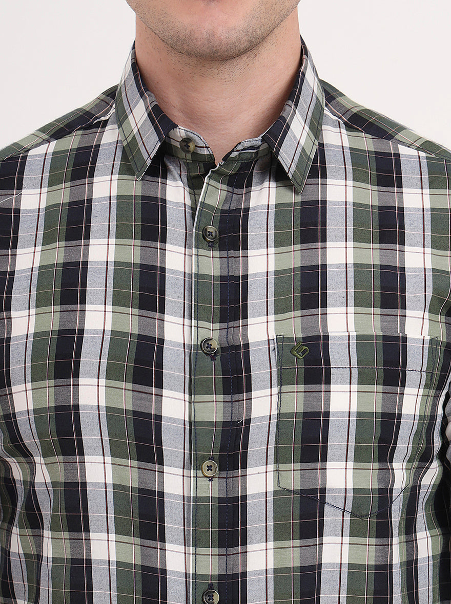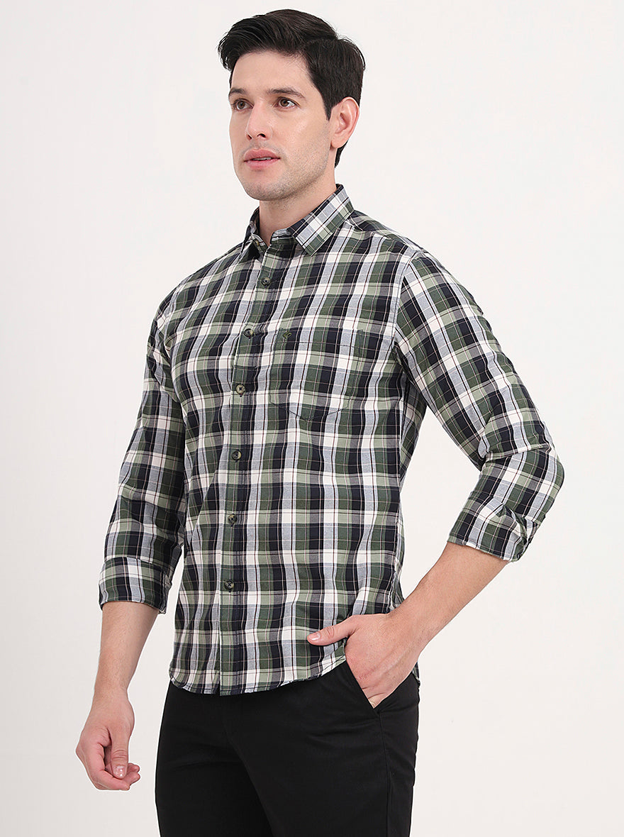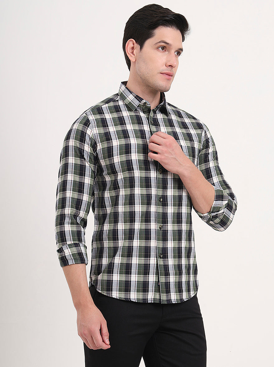 Green Checked Slim Fit Casual Shirt | Greenfibre
