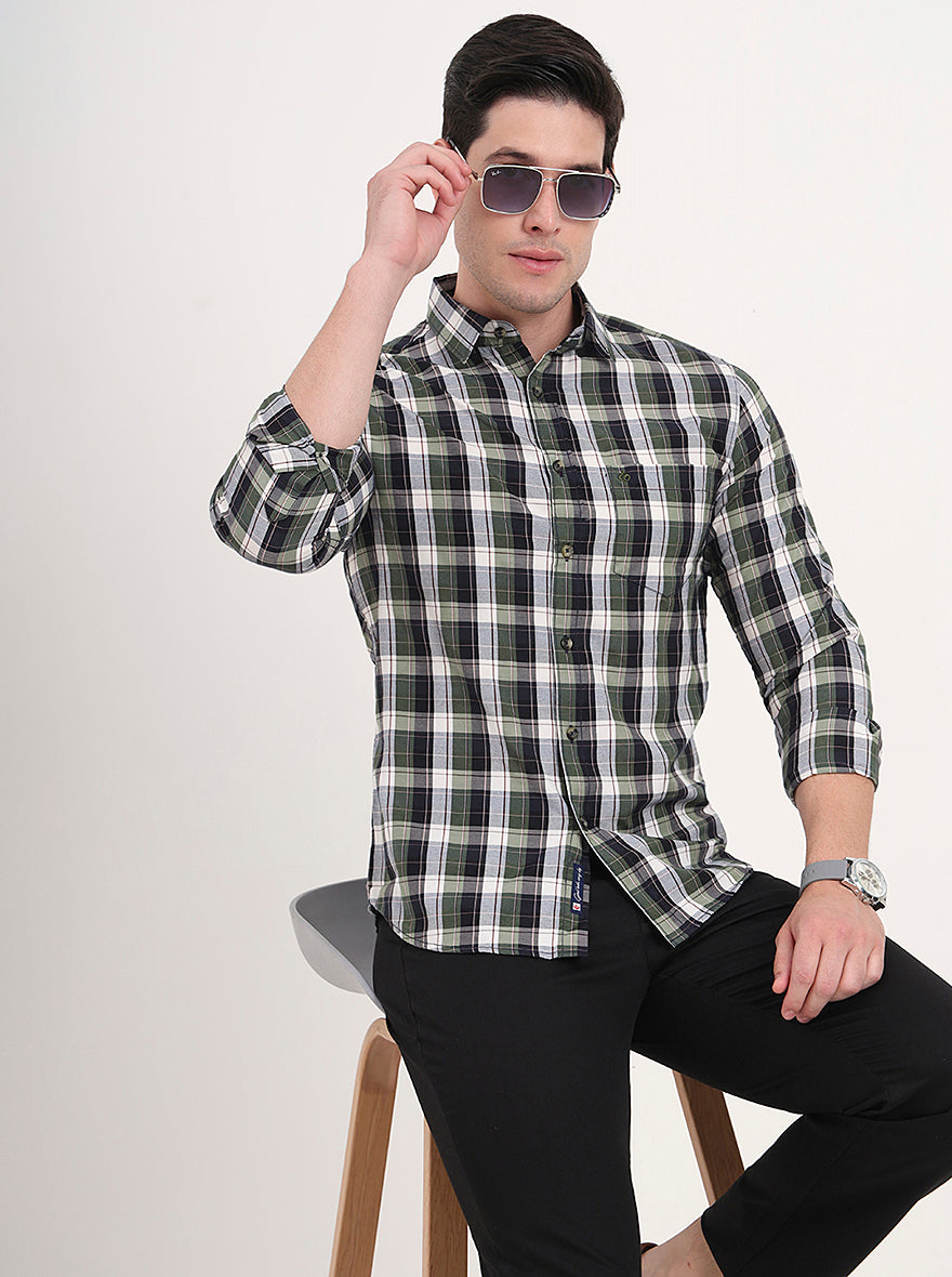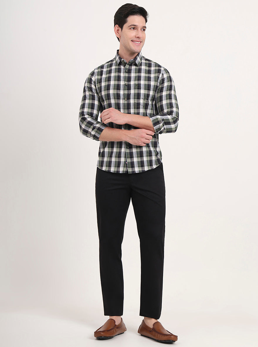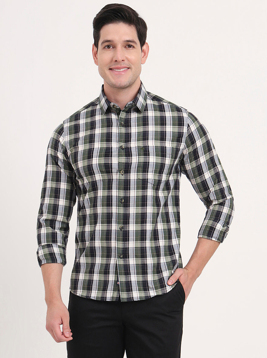 Green Checked Slim Fit Casual Shirt | Greenfibre