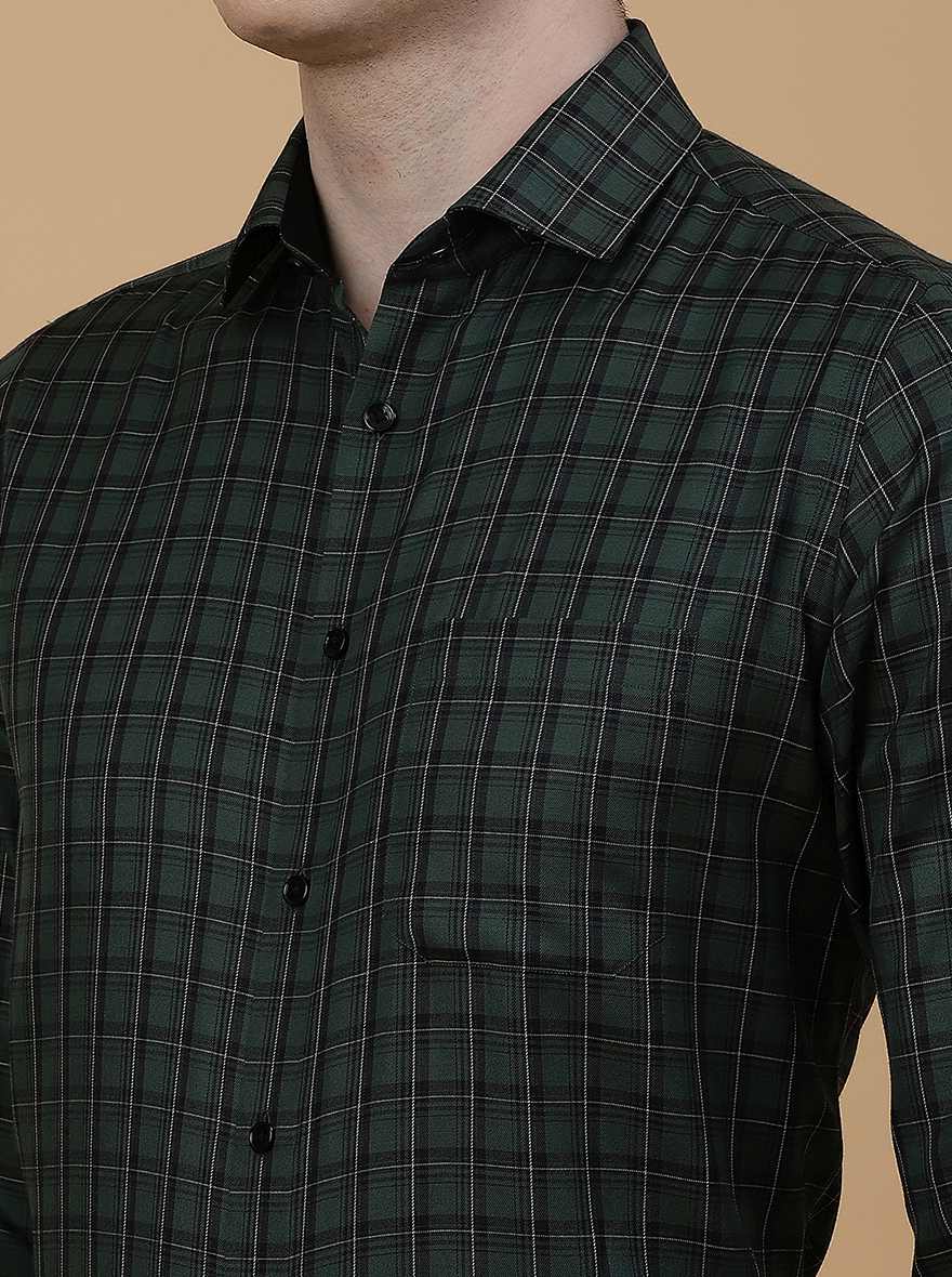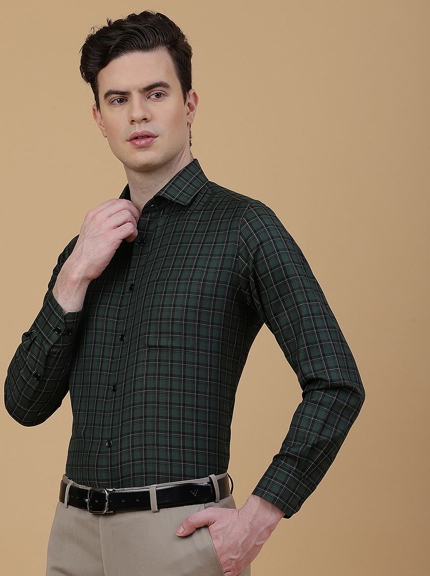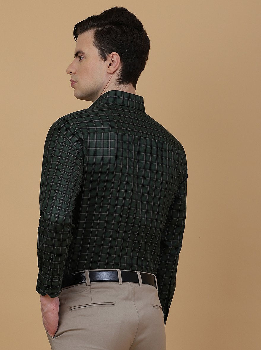 Green Checked Slim Fit Formal Shirt | Greenfibre