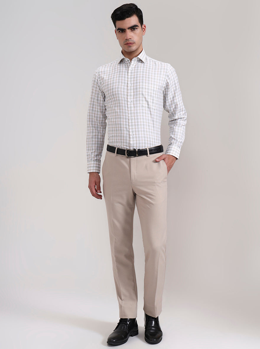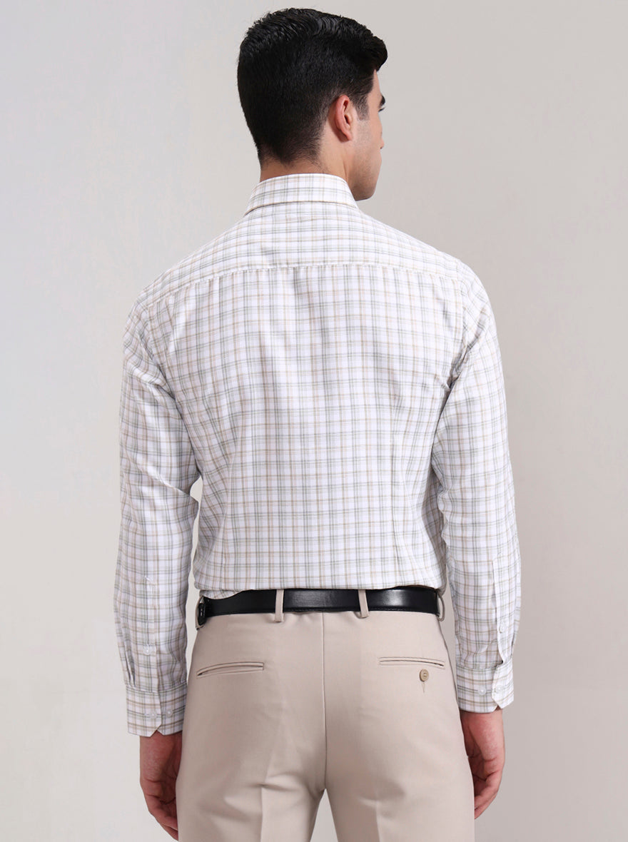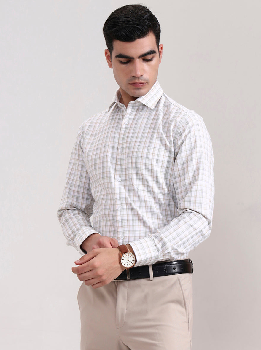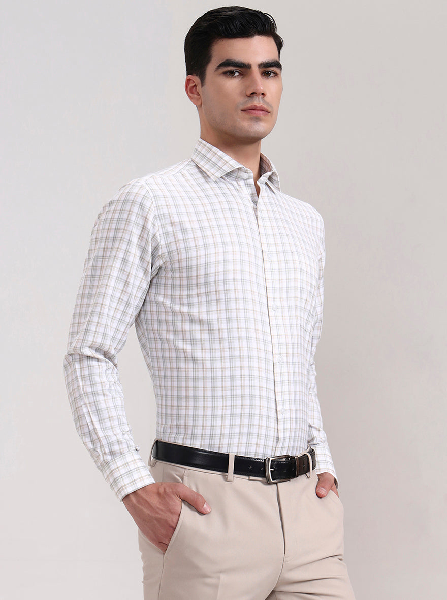 Green & Fawn Checked Slim Fit Formal Shirt | Greenfibre