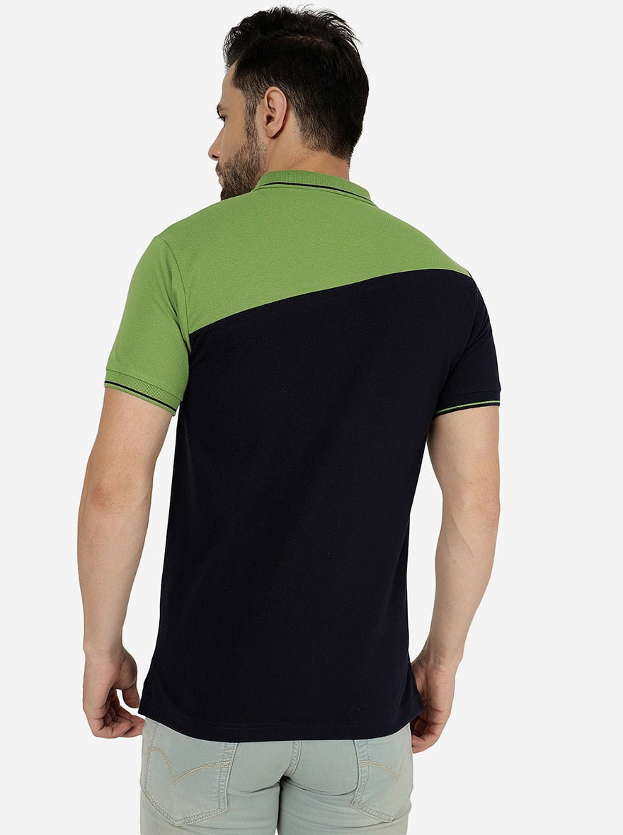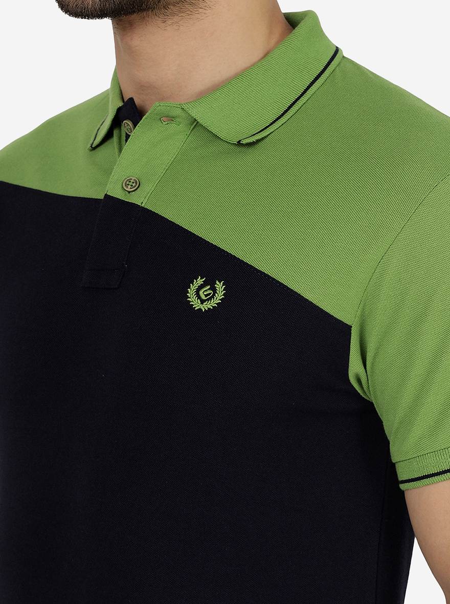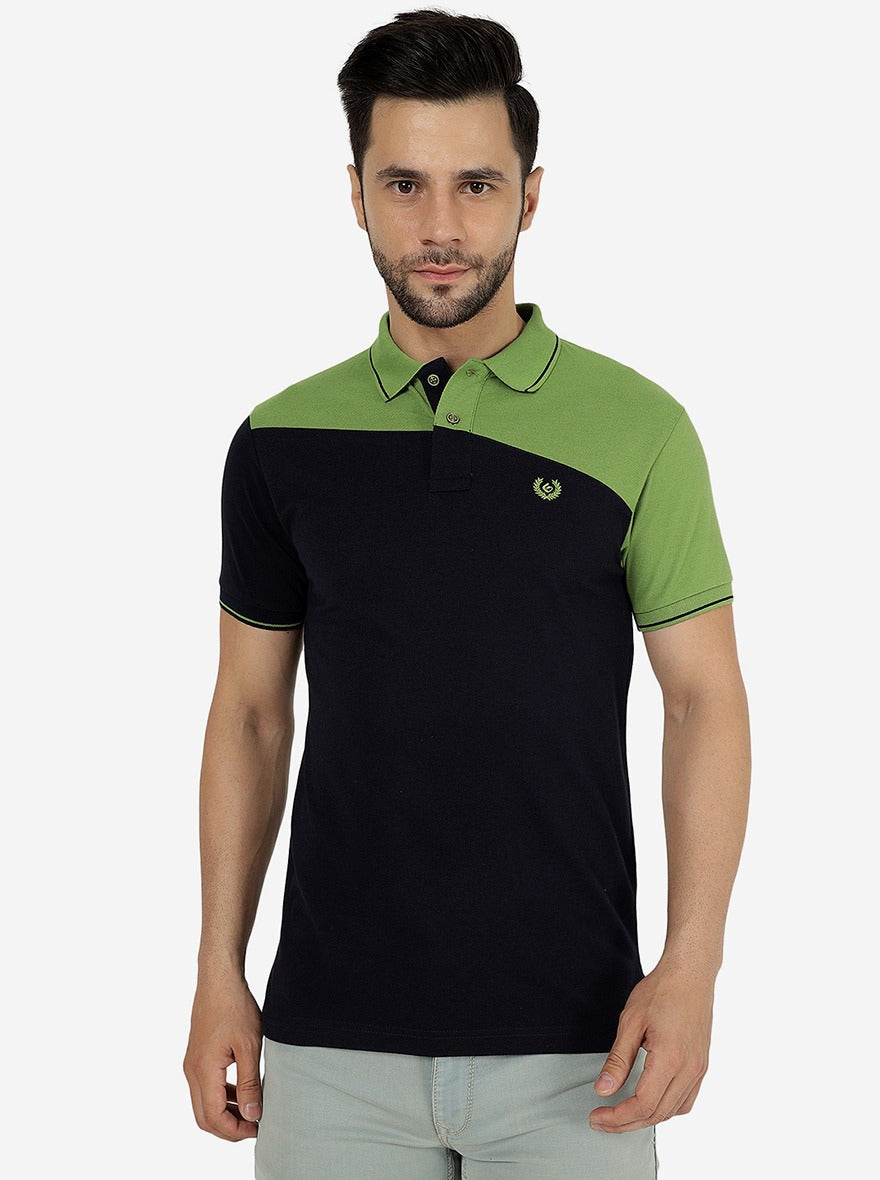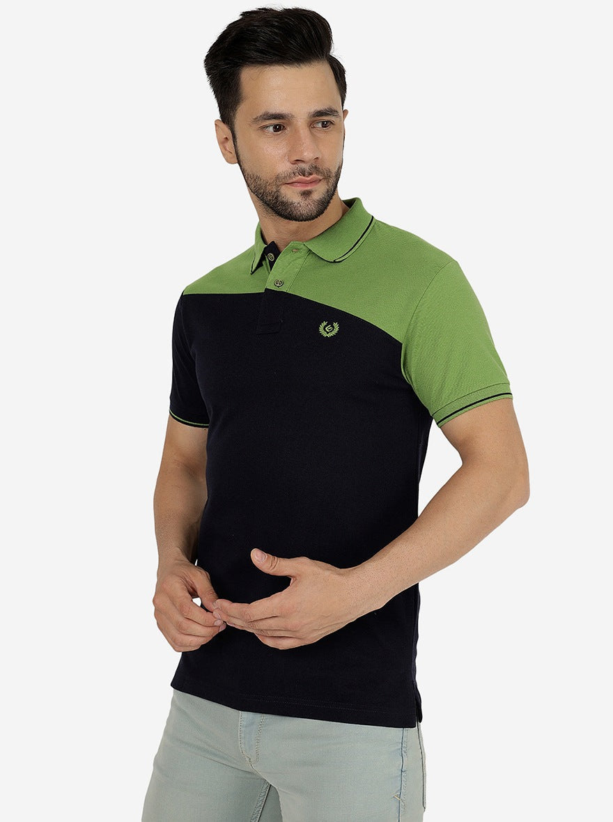 Green & Navy Blue Solid Slim Fit Polo T-Shirt | Greenfibre