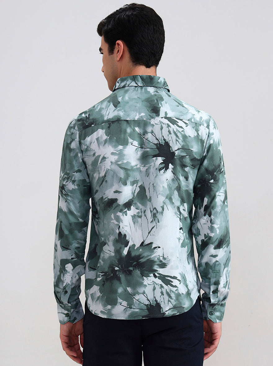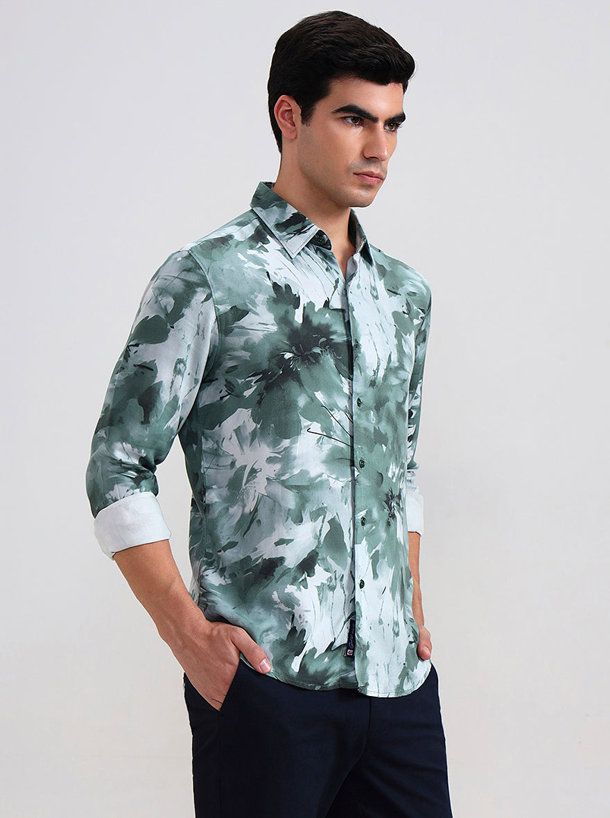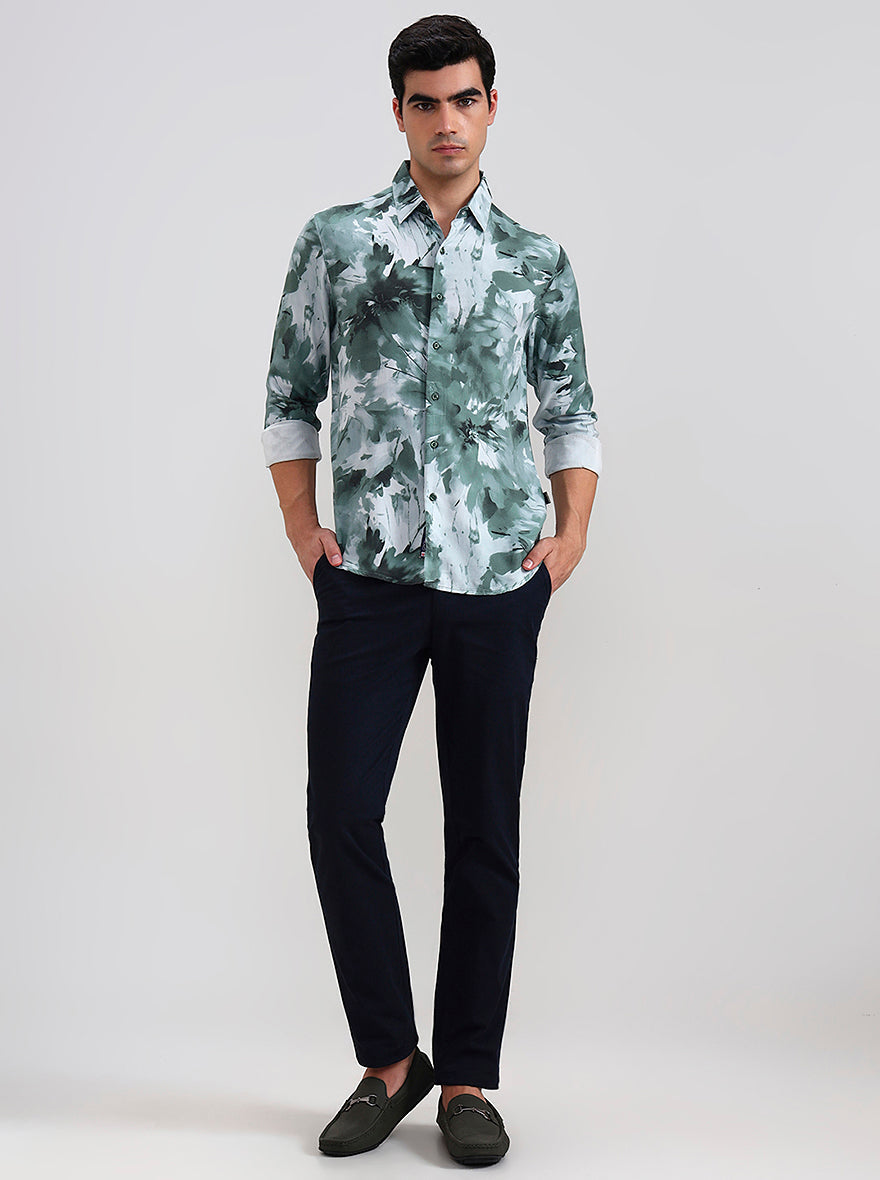 Green Printed Slim Fit Casual Shirt | Greenfibre