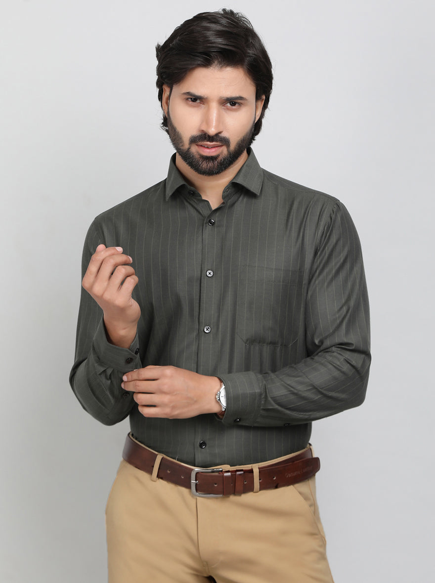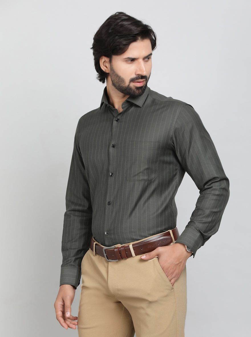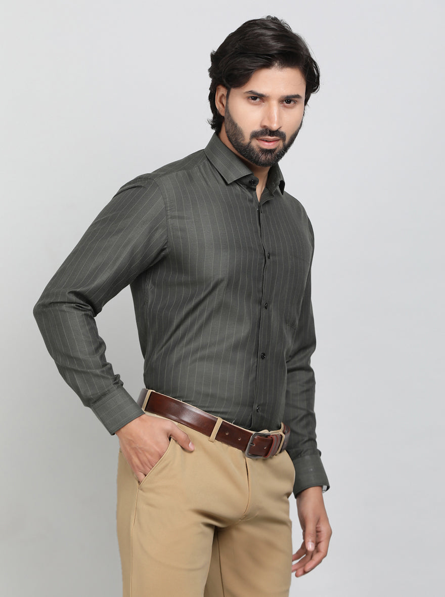 Green Striped Slim Fit Formal Shirt | Greenfibre