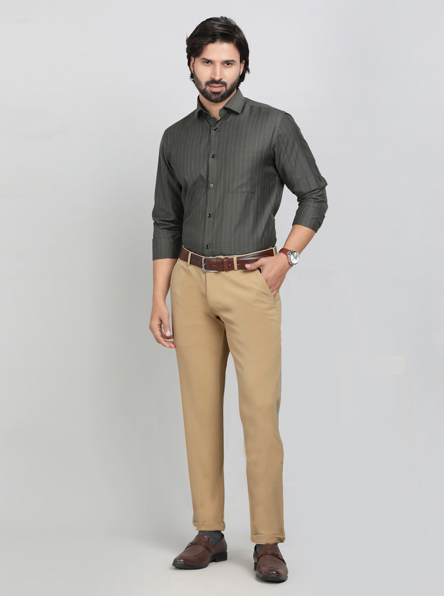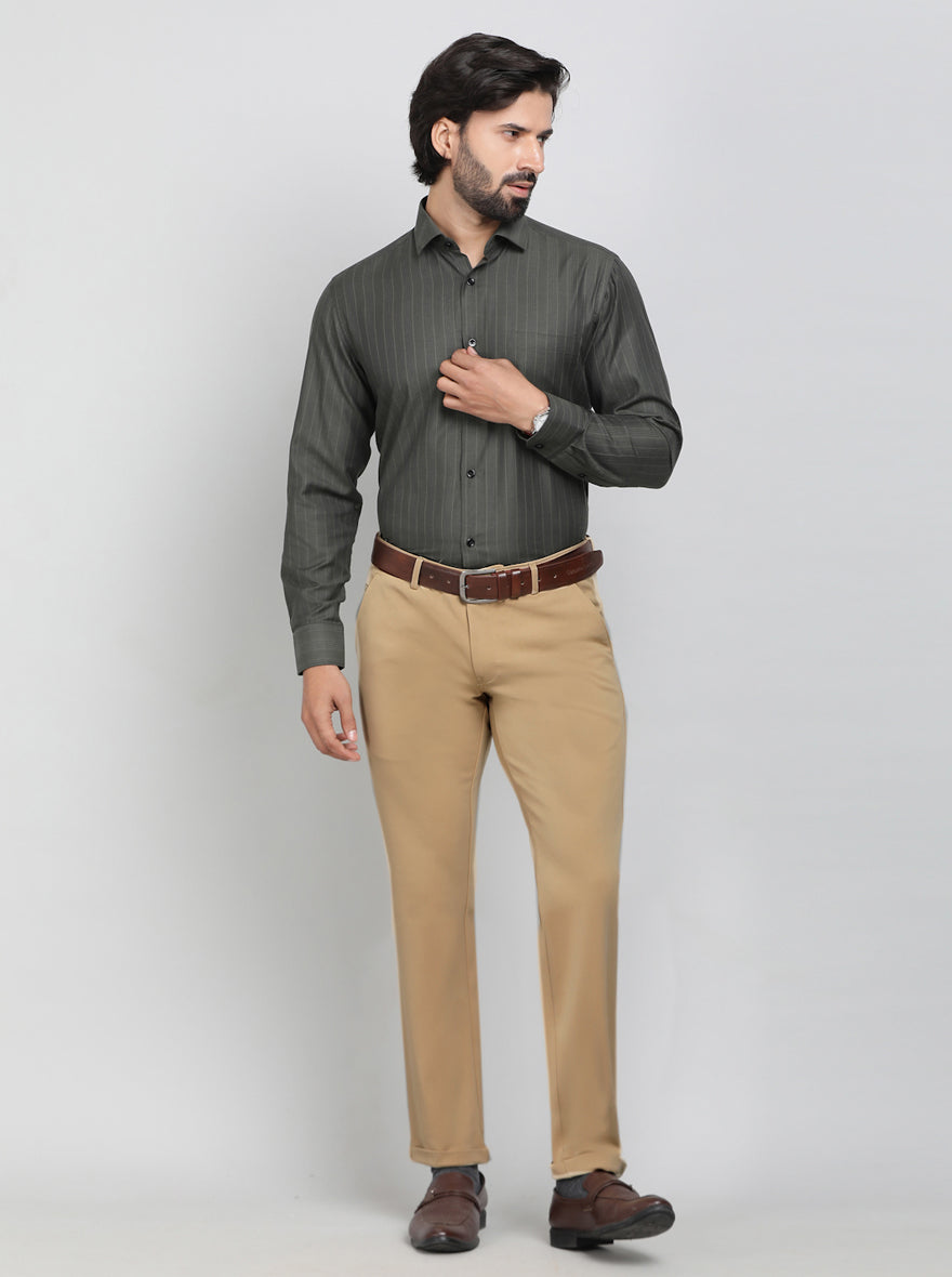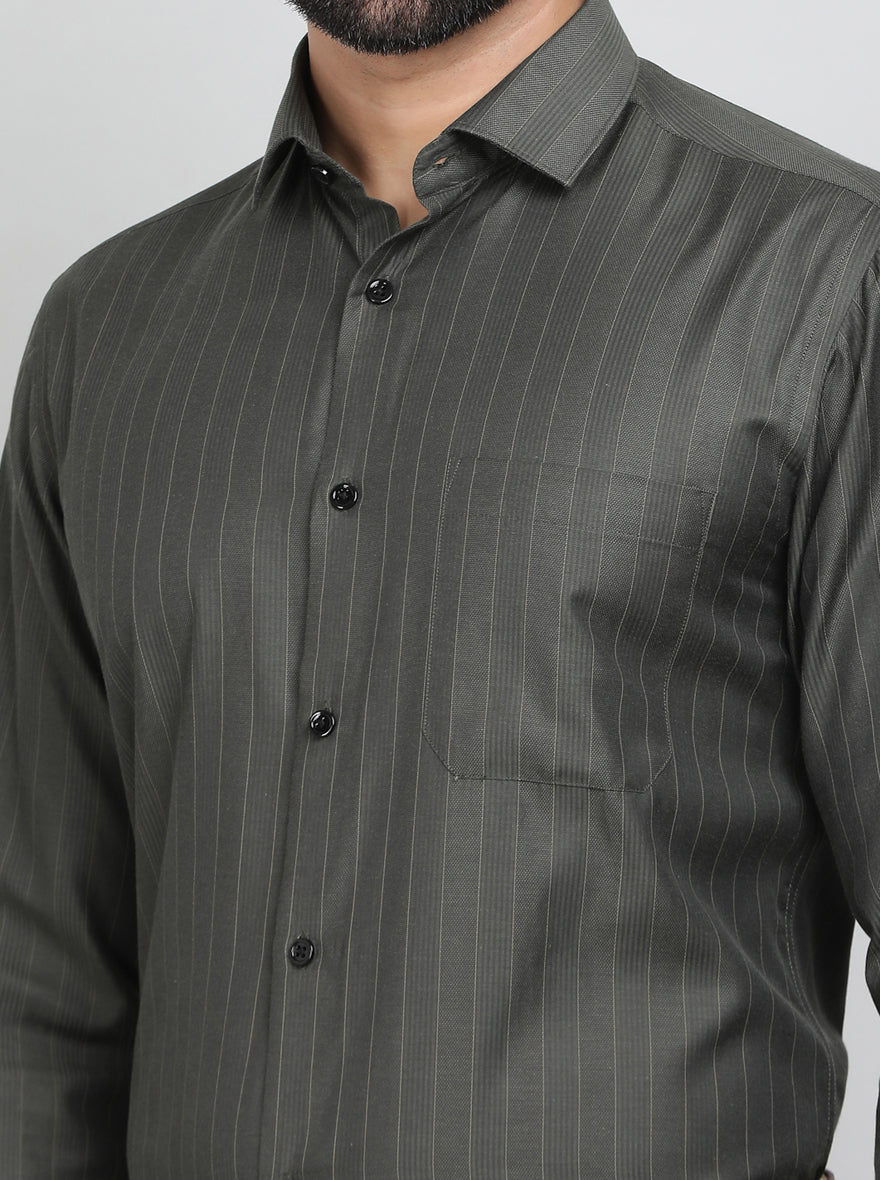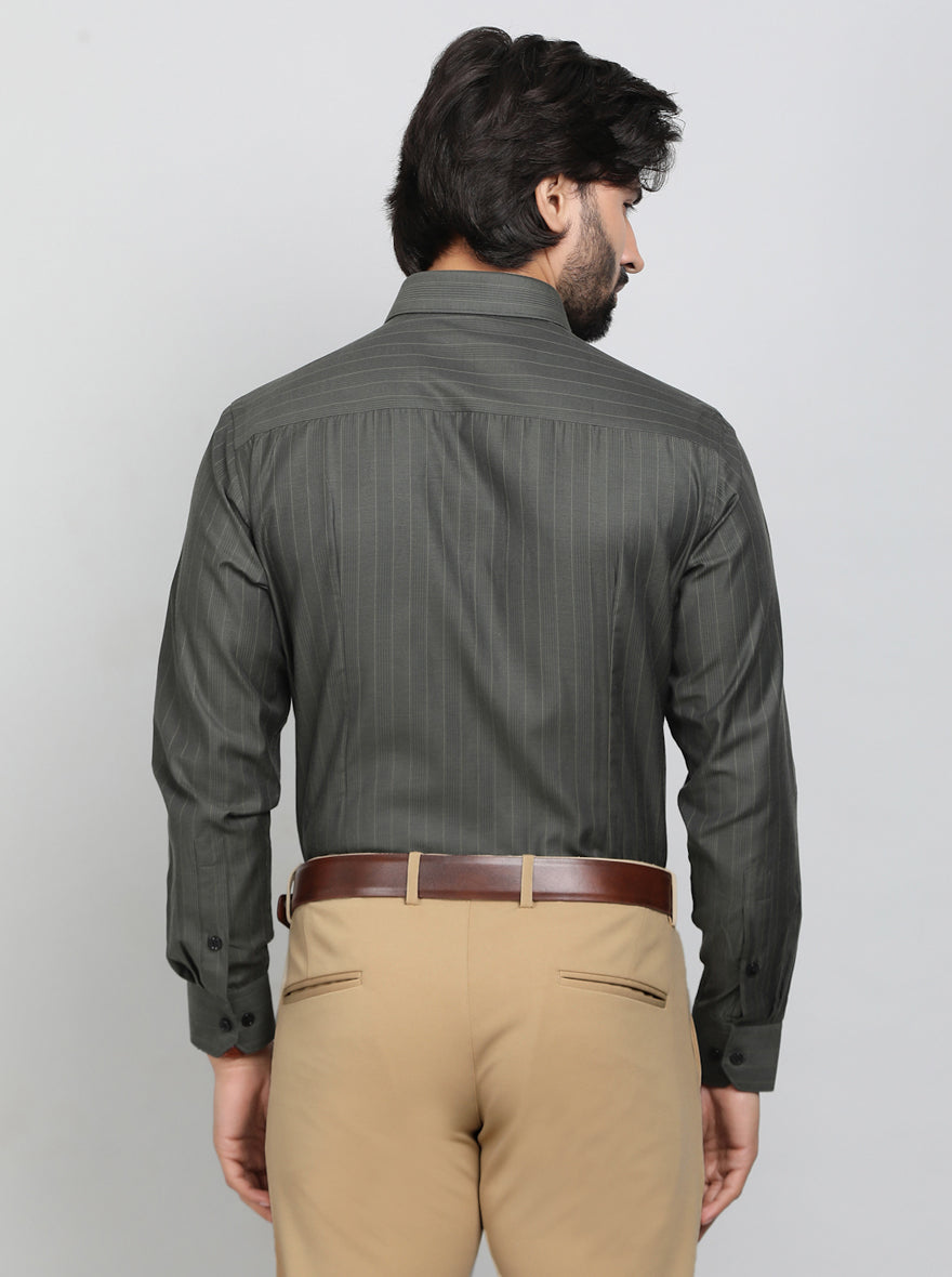Green Striped Slim Fit Formal Shirt | Greenfibre