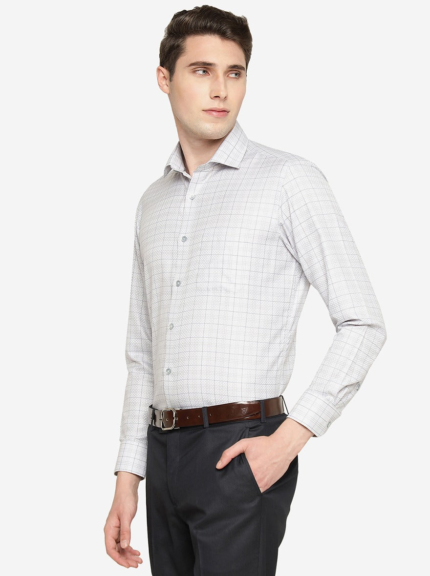 Grey Checked Slim Fit Formal Shirt | Greenfibre