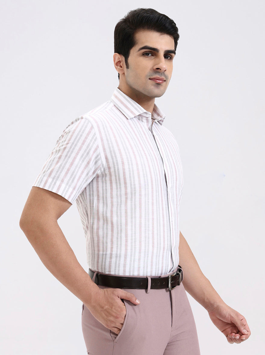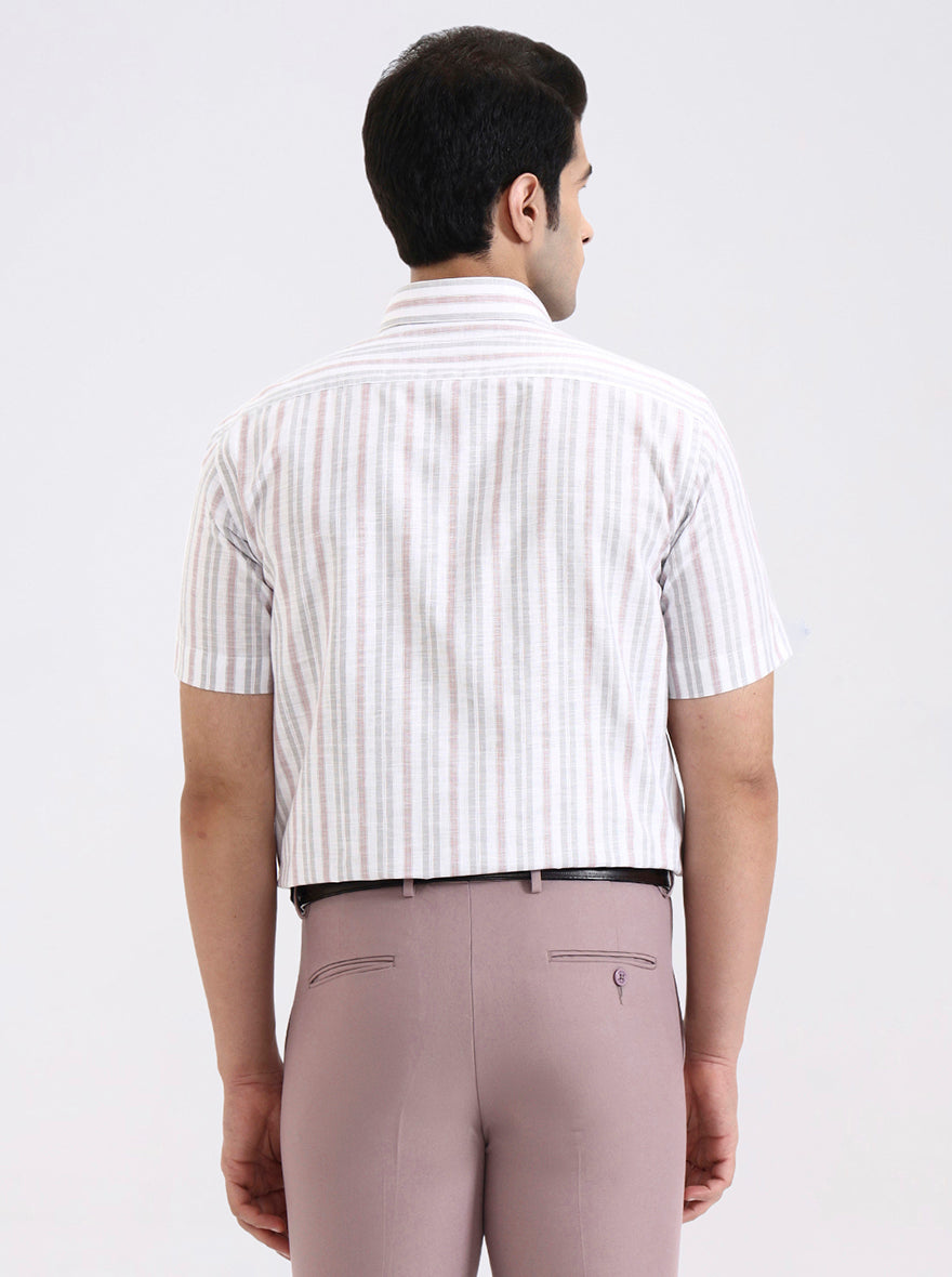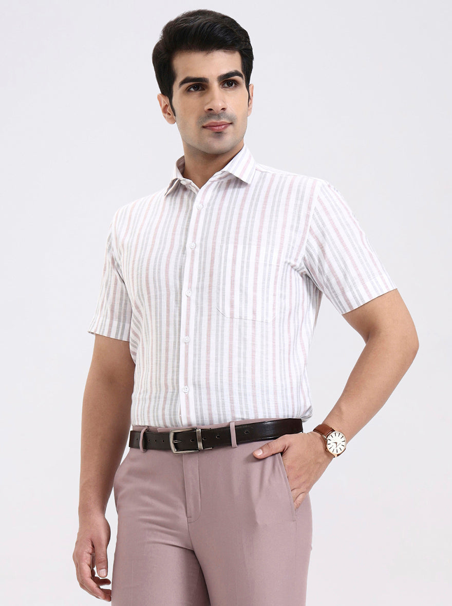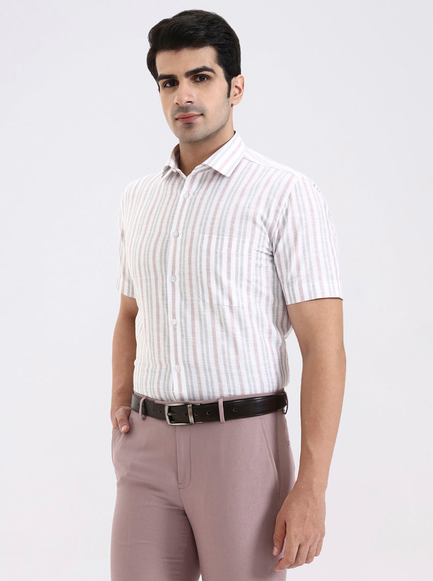Grey & Pink Striped Regular Fit Formal Shirt | Greenfibre