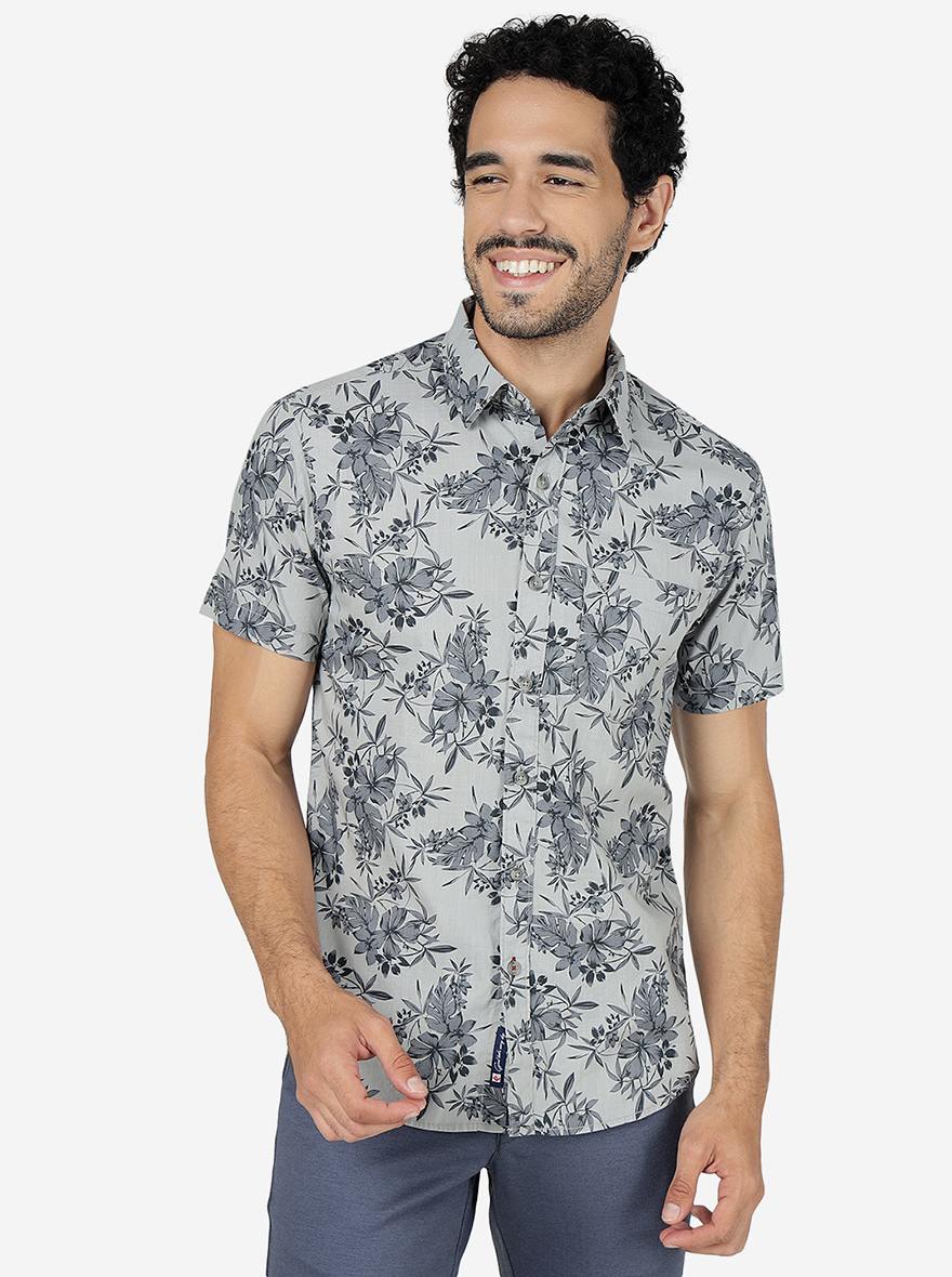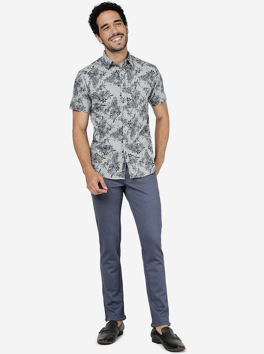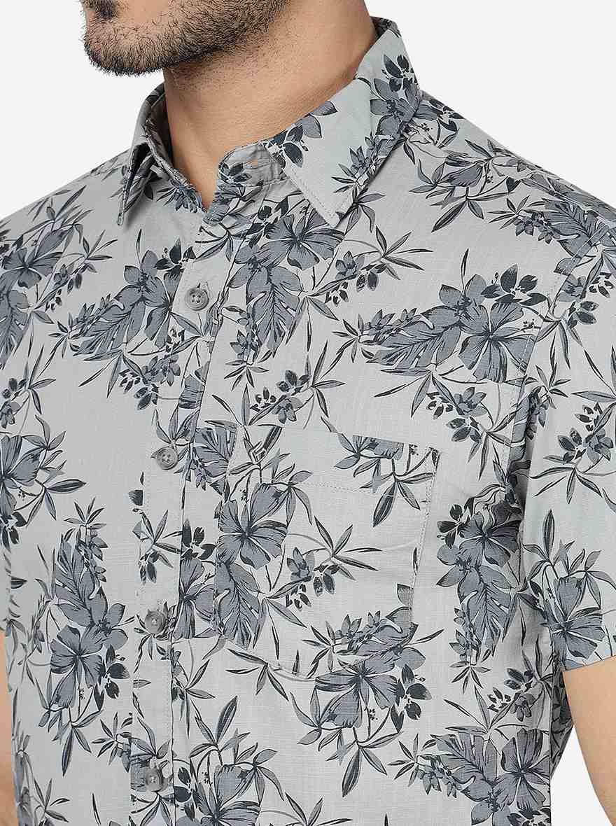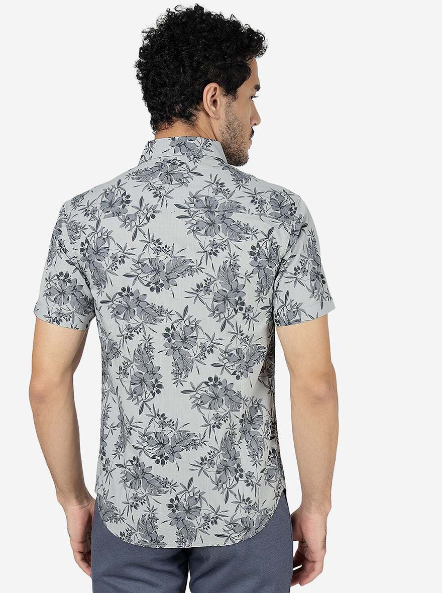 Grey Printed Slim Fit Casual Shirt | Greenfibre