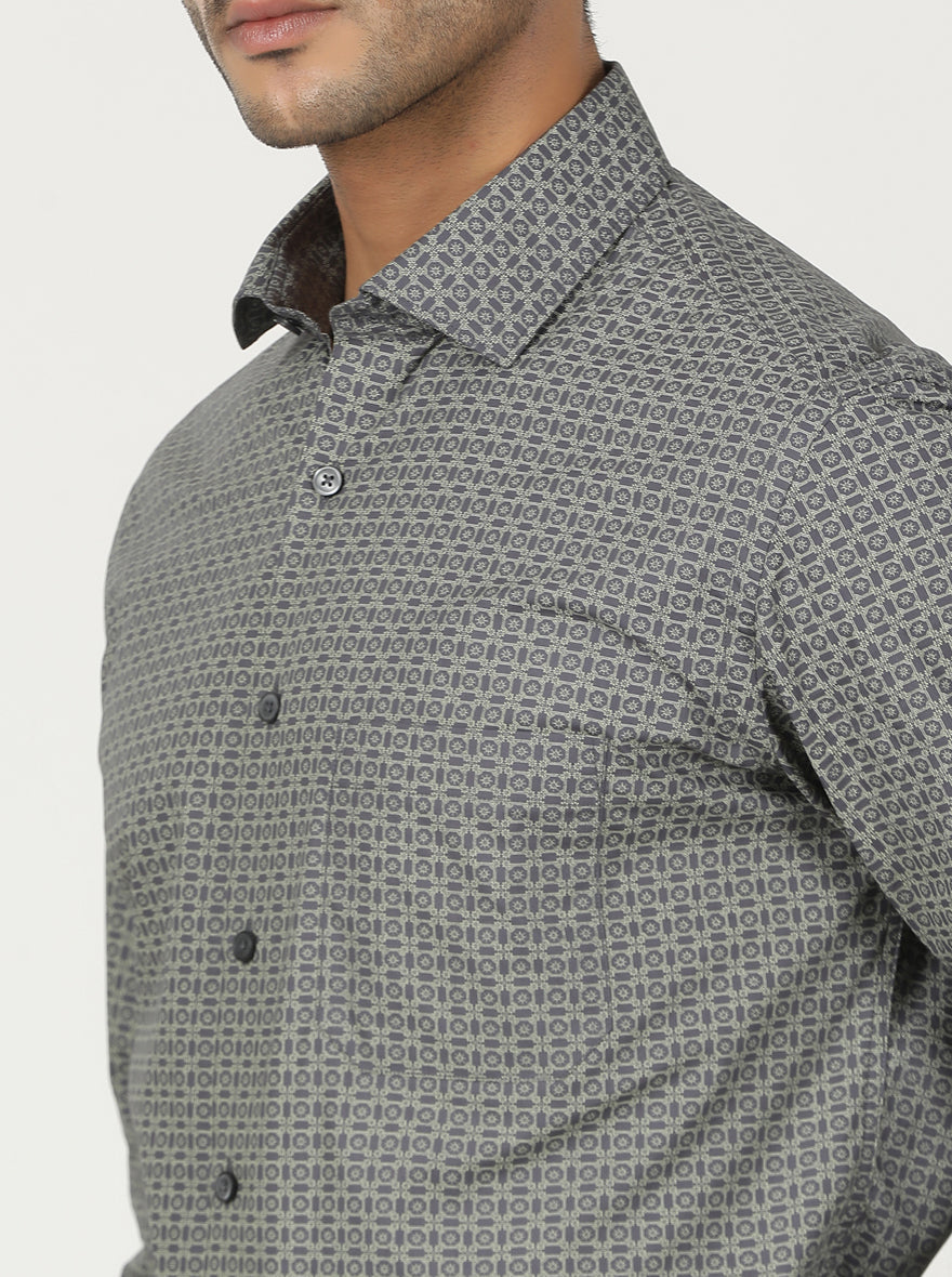 Grey Printed Slim Fit Formal Shirt | Greenfibre