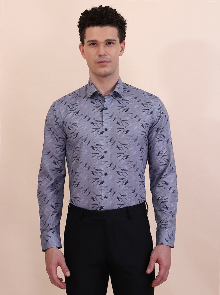 Grey Printed Slim Fit Party Wear Shirt | Greenfibre