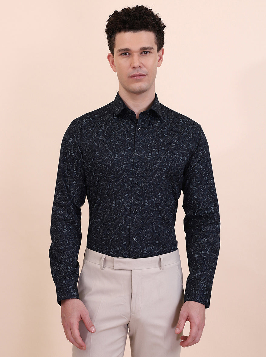 Grey Printed Slim Fit Party Wear Shirt | Greenfibre