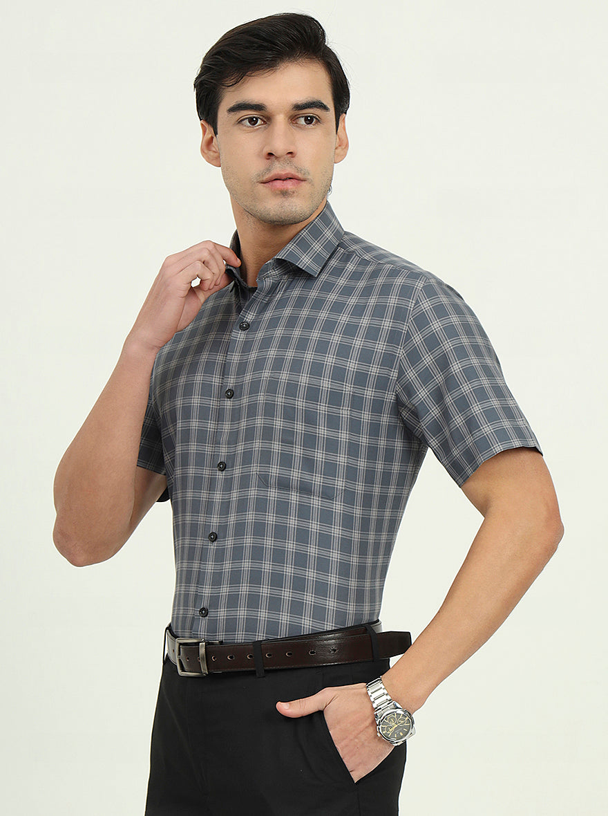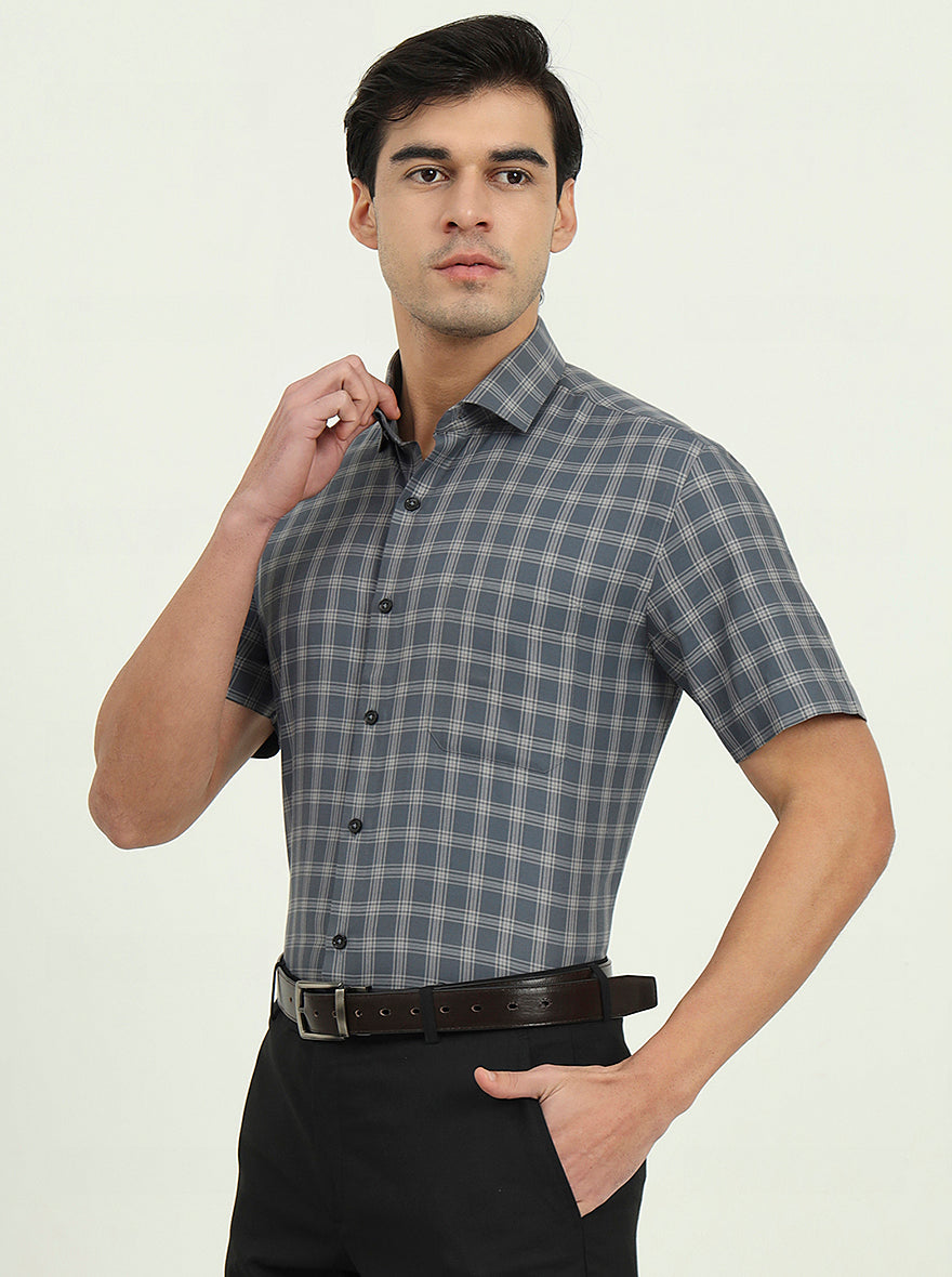 Grey Solid Regular Fit Formal Shirt | Greenfire