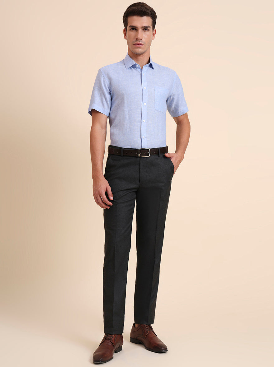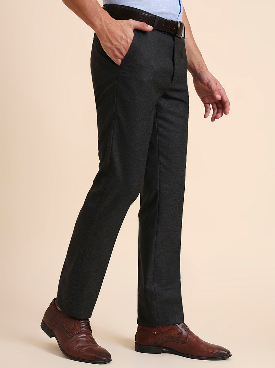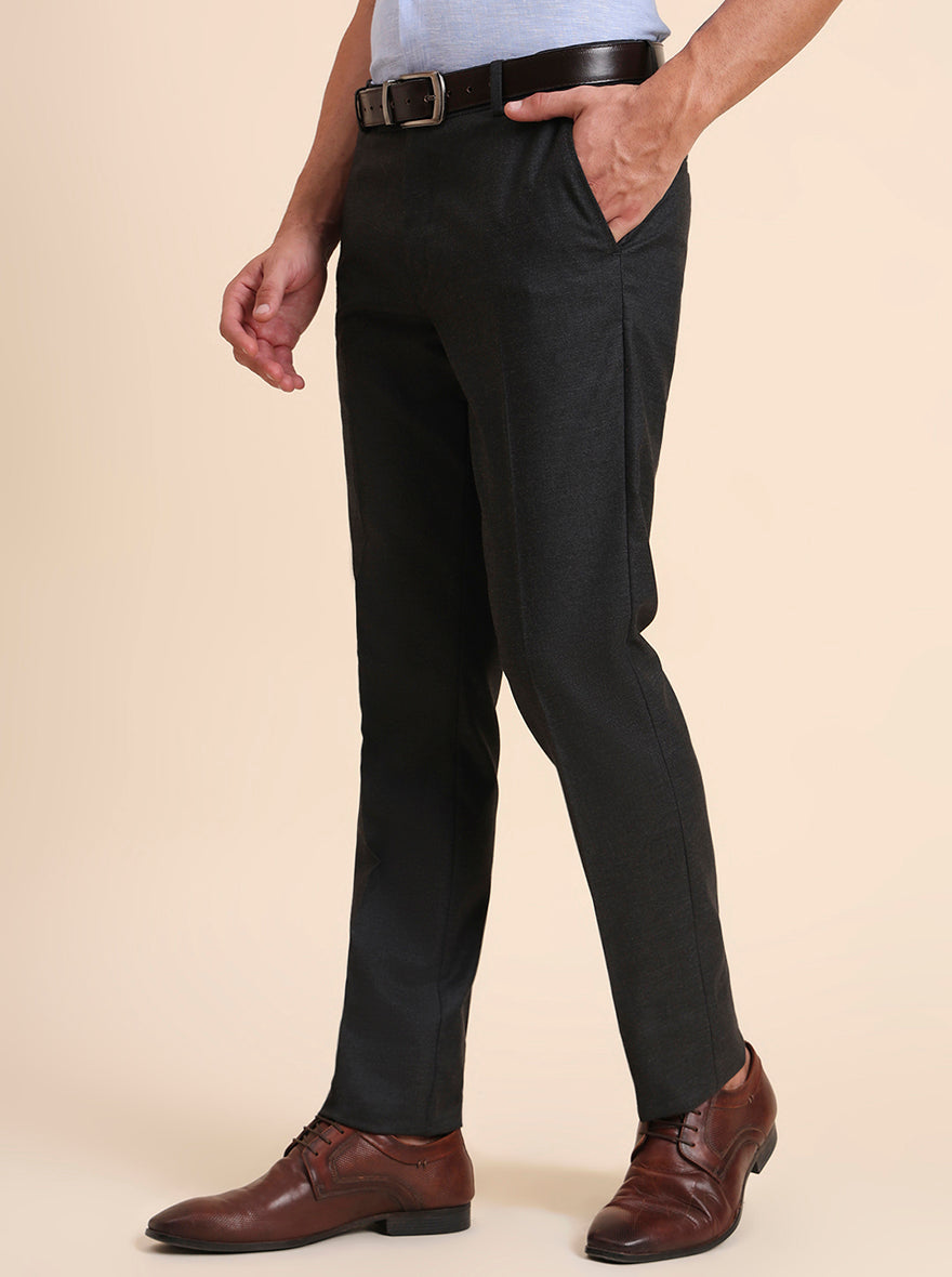 Grey Solid Slim Fit Formal Trouser | GreenFiber