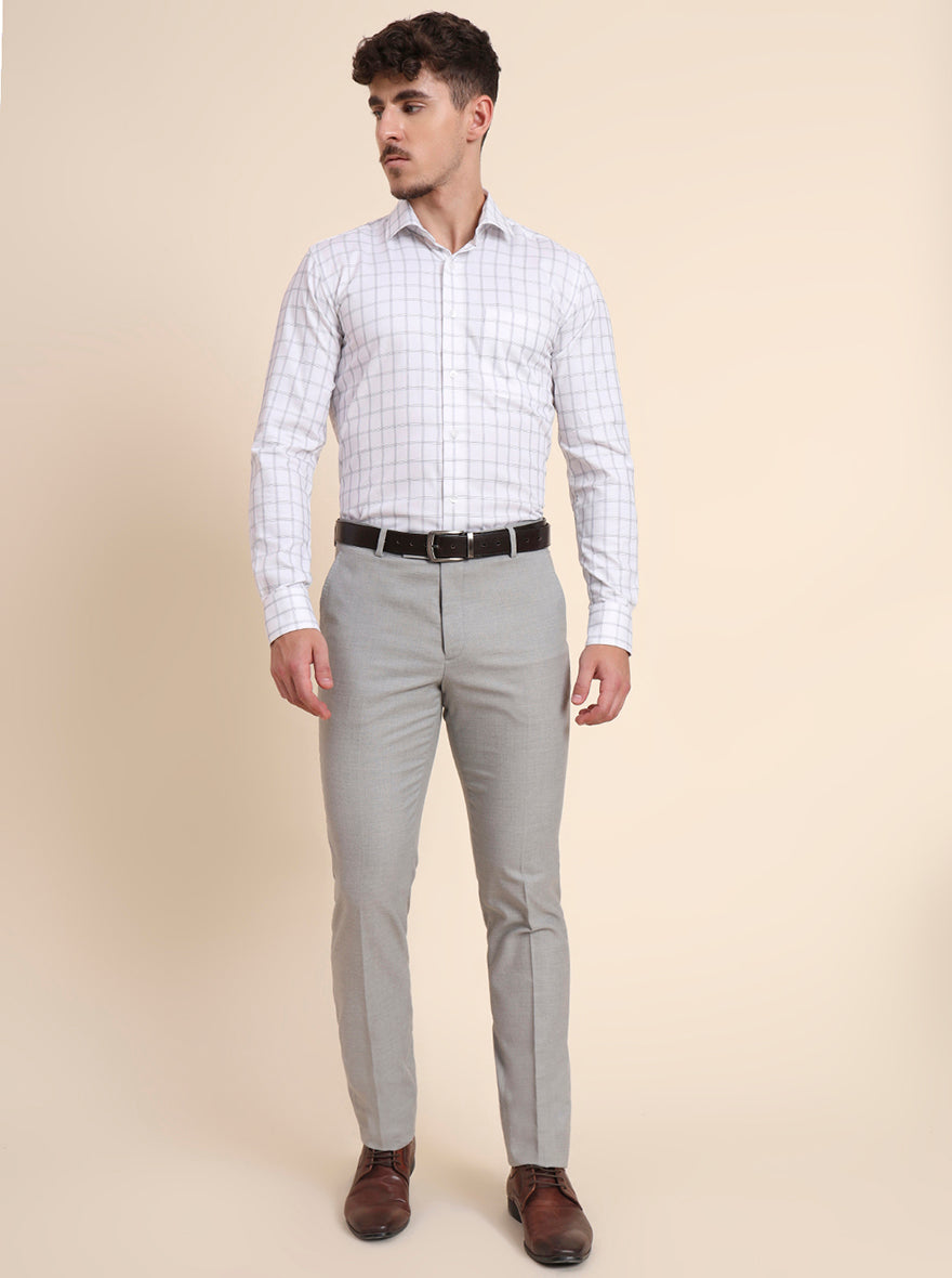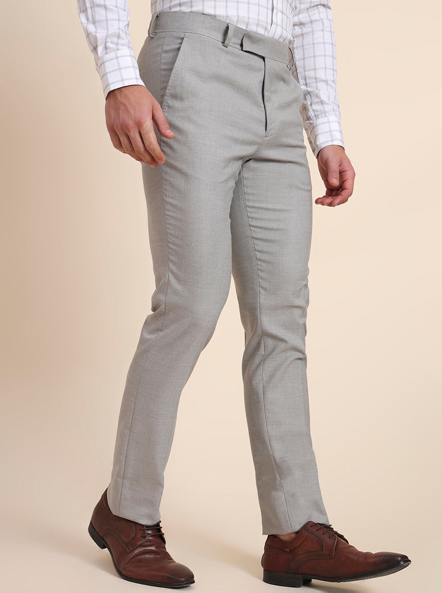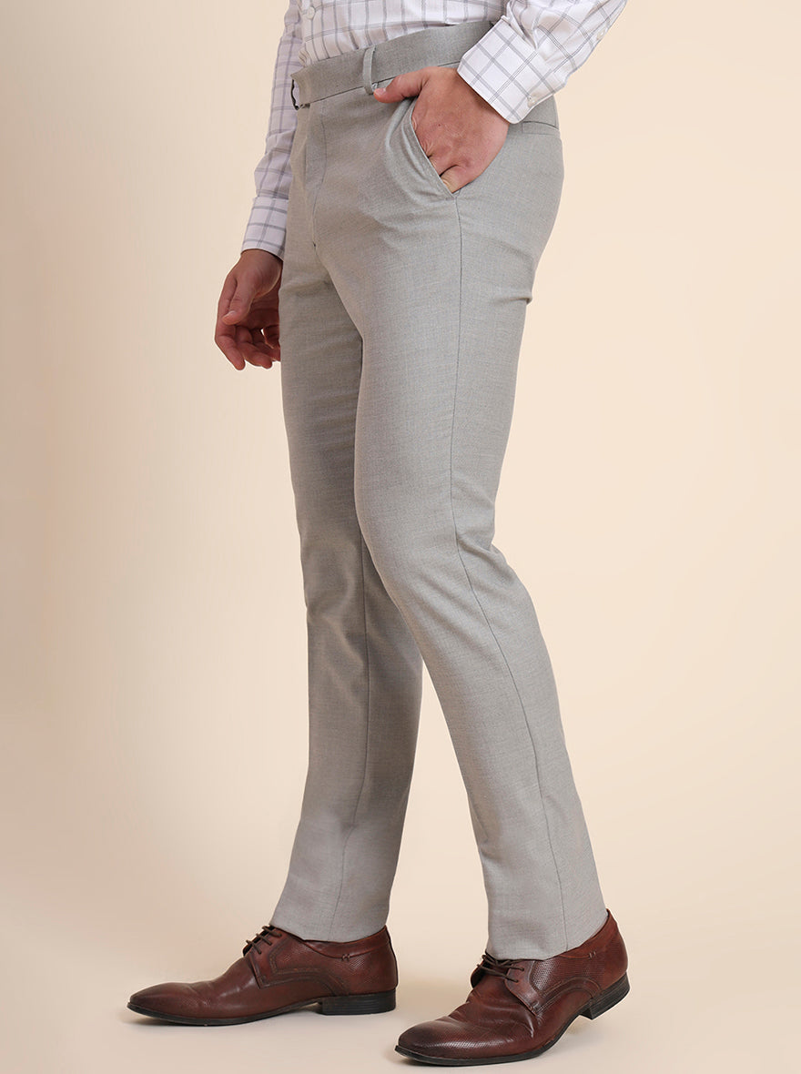 Grey Solid Slim Fit Formal Trouser | Greenfibre