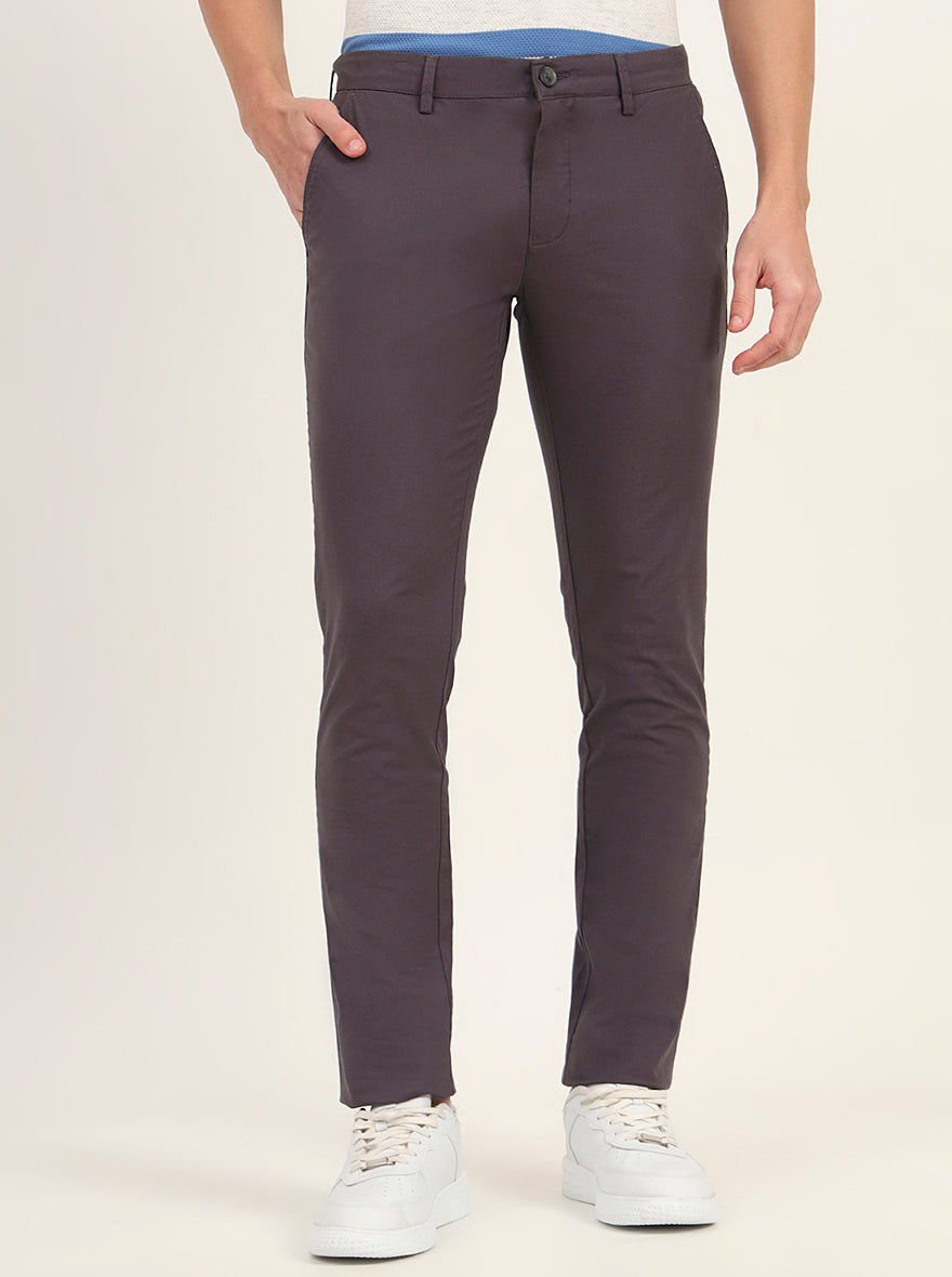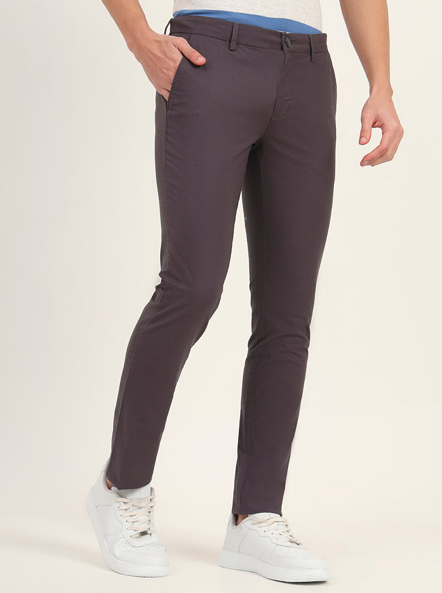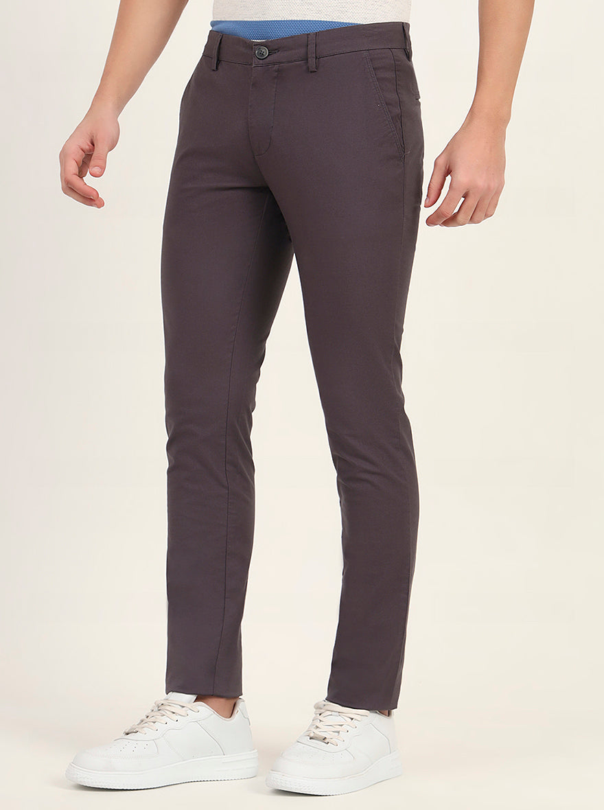 Grey Solid Super Slim Fit Casual Trouser | Greenfibre