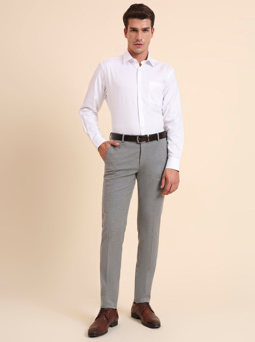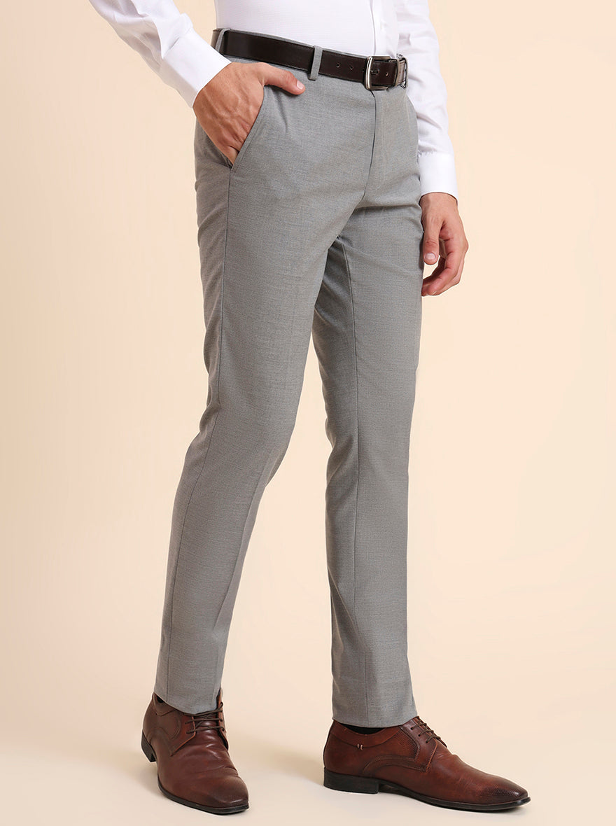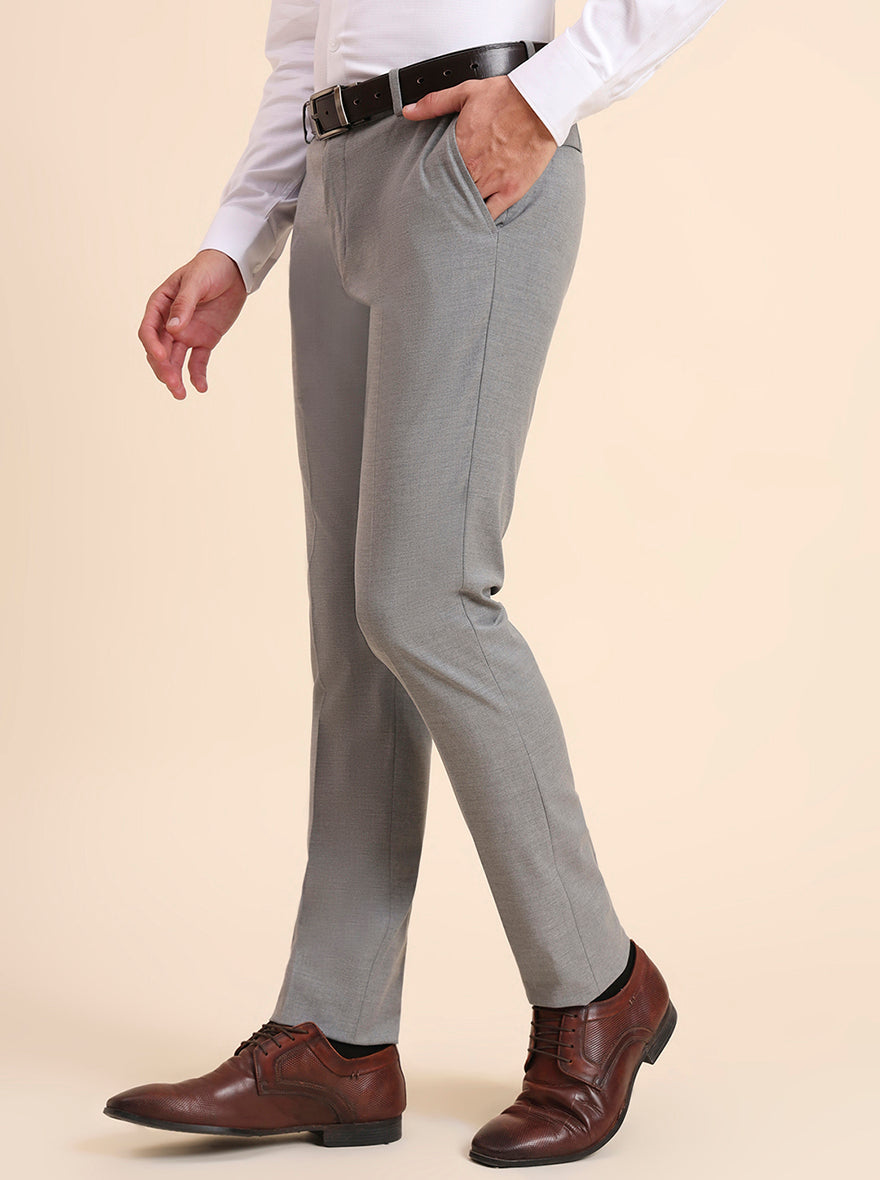 Grey Solid Super Slim Fit Formal Trouser | Greenfibre