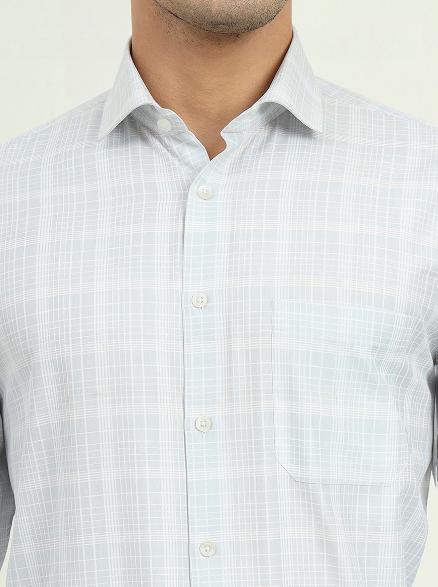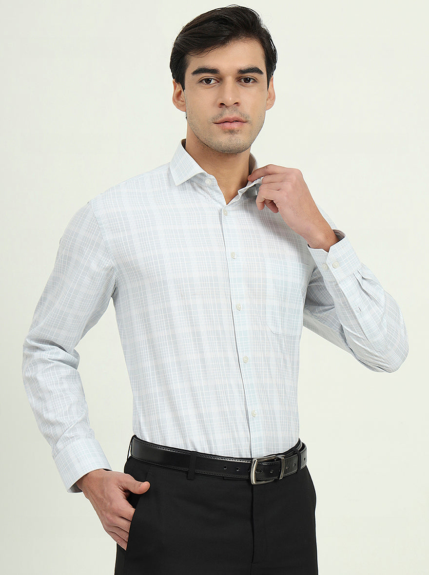 Grey & White Checked Regular Fit Formal Shirt | Greenfire