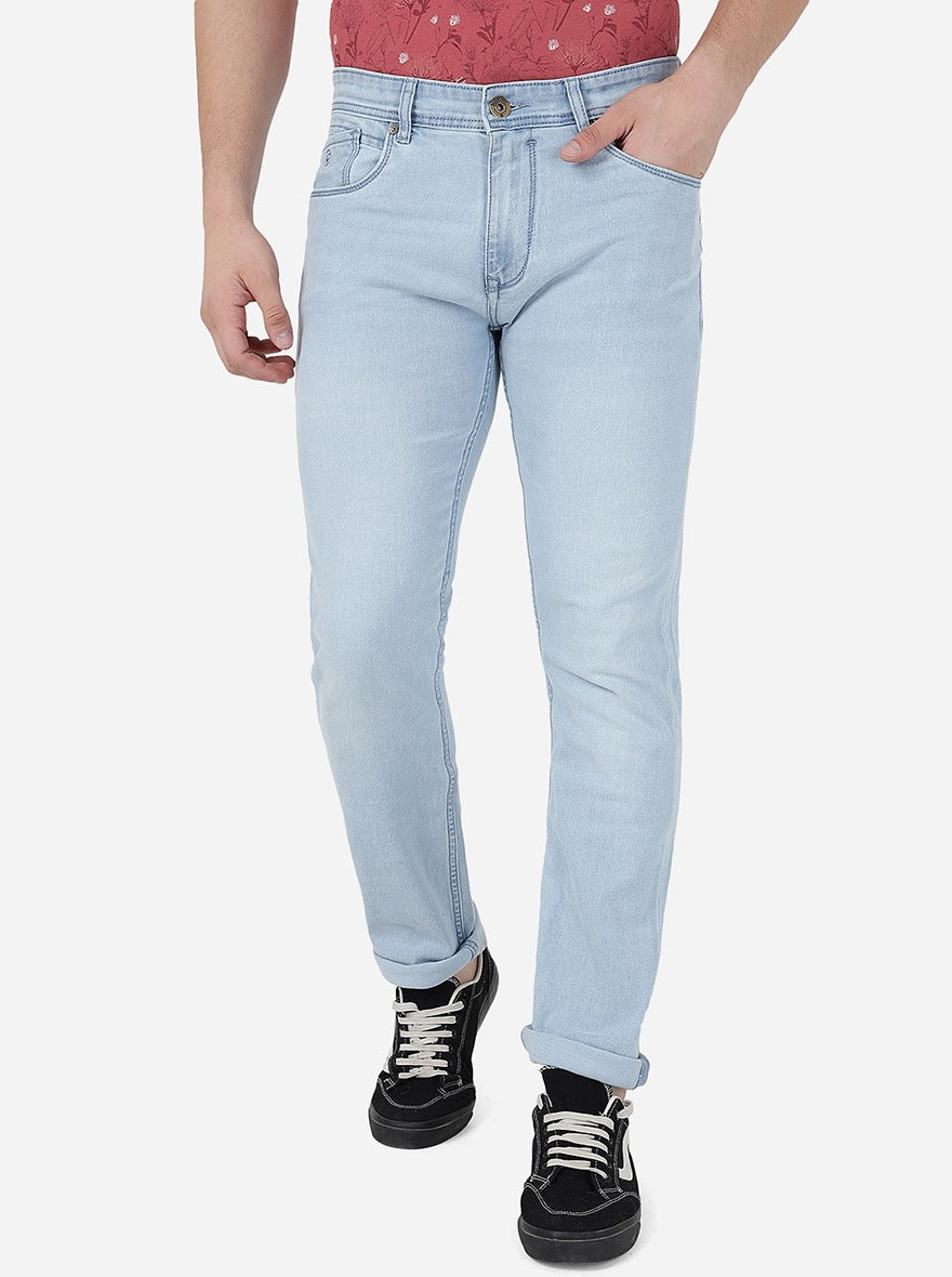 Ice Blue Solid Straight Fit Jeans | Greenfibre