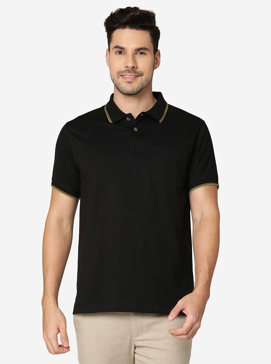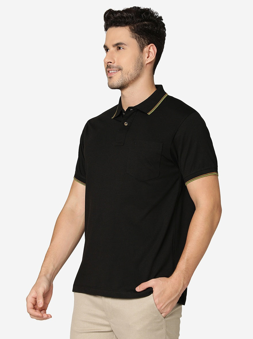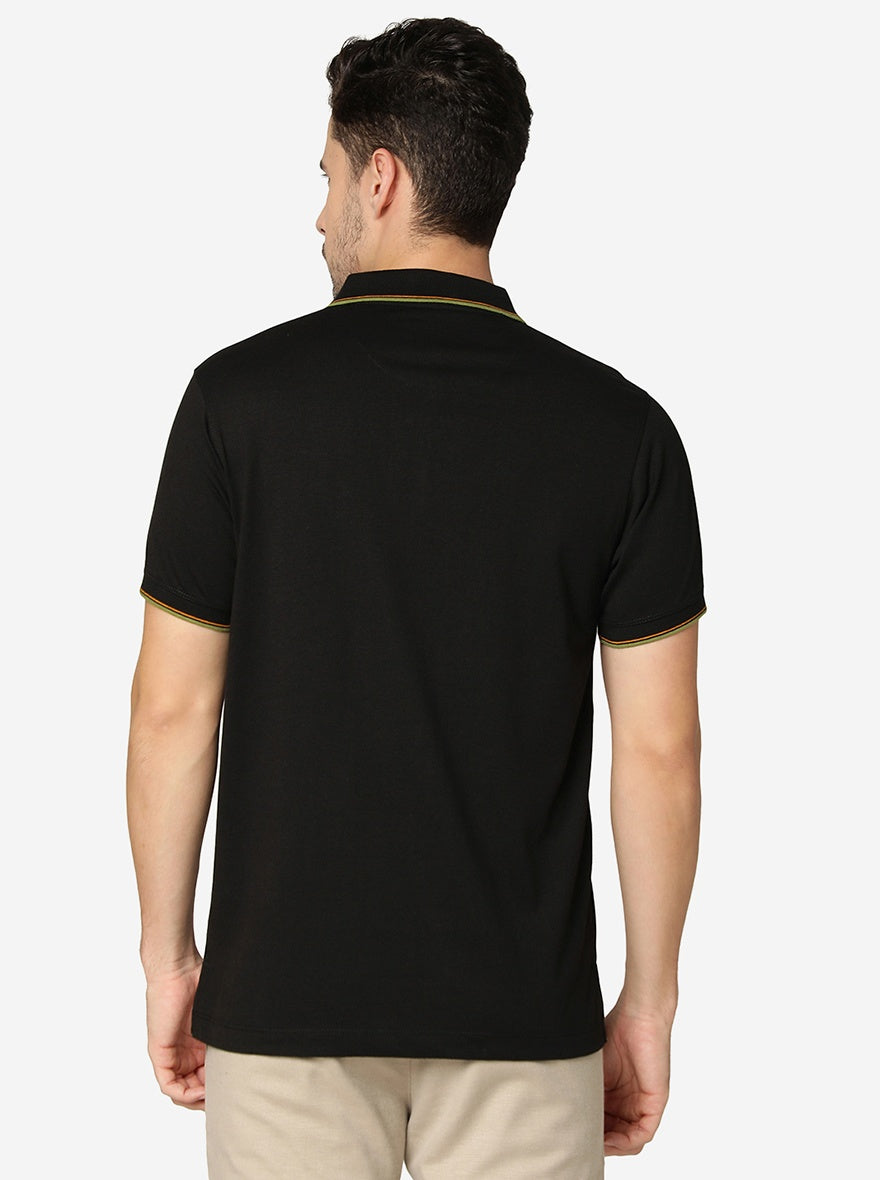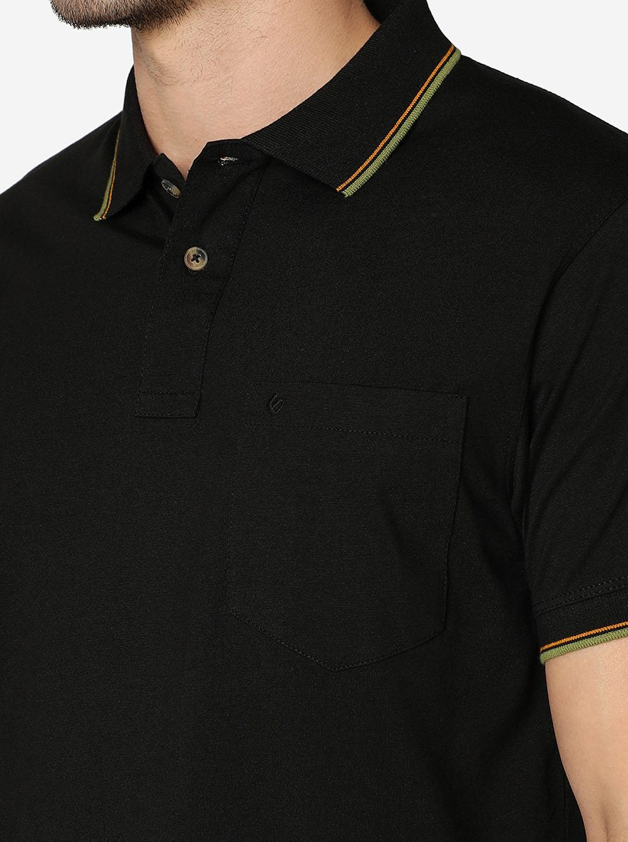 Jet Black Solid Slim Fit Polo T-Shirt | Greenfibre