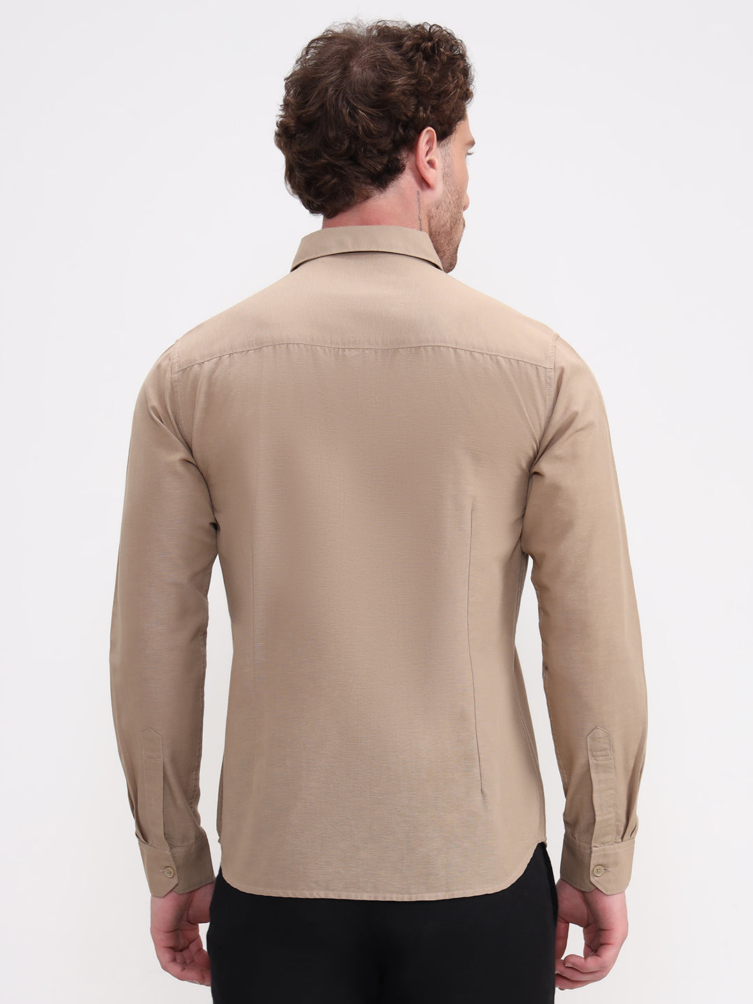 Khaki Solid Slim Fit Casual Shirt | Greenfibre
