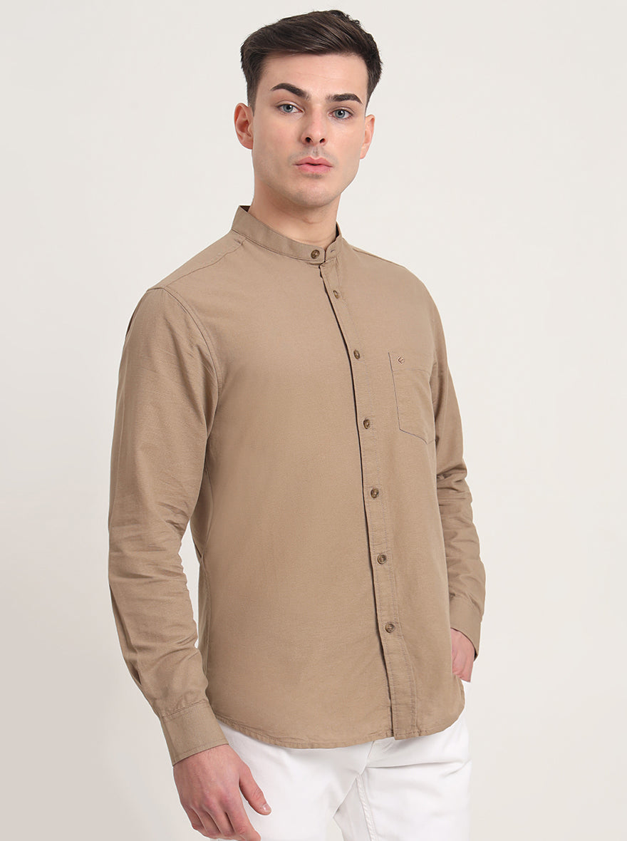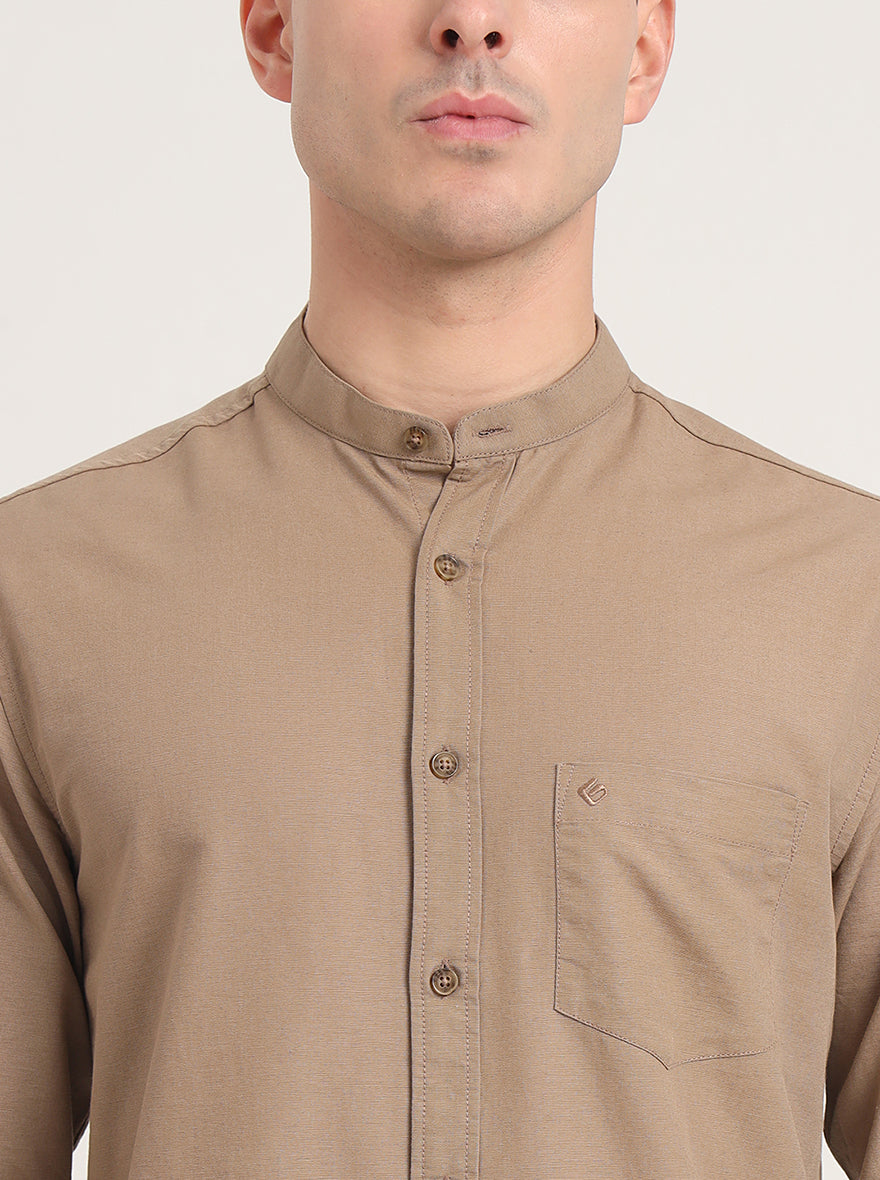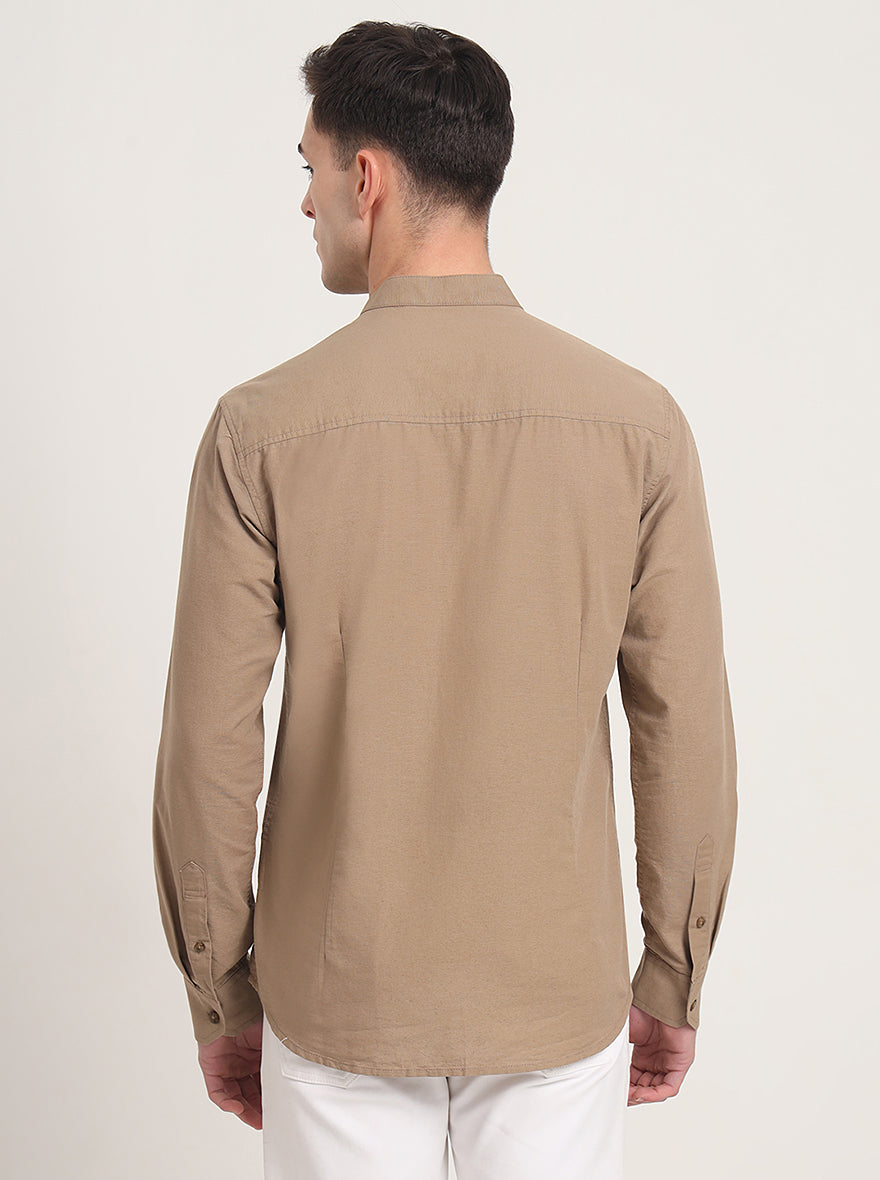 Khaki Solid Slim Fit Casual Shirt | Greenfibre
