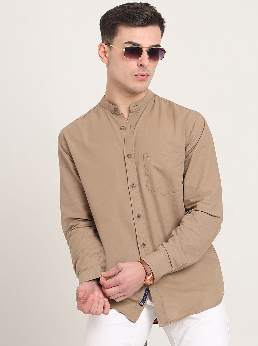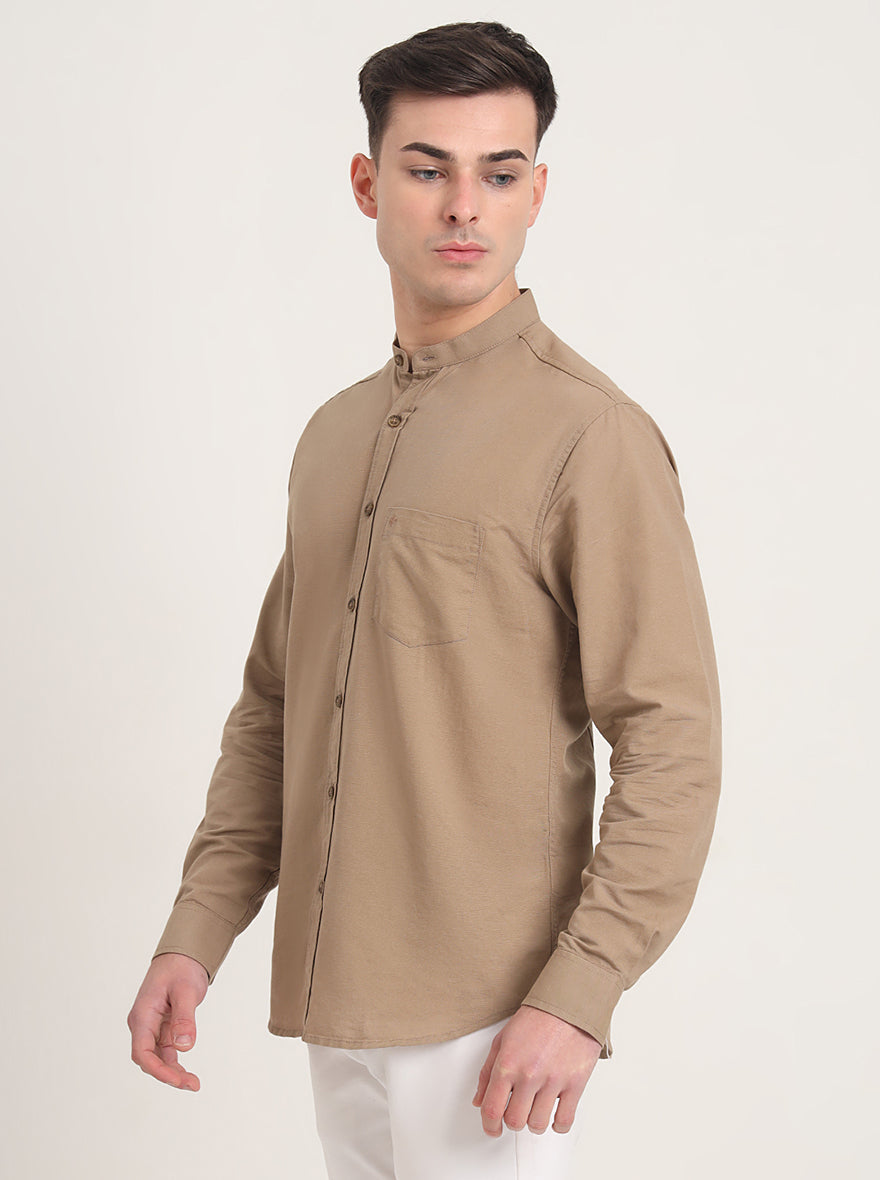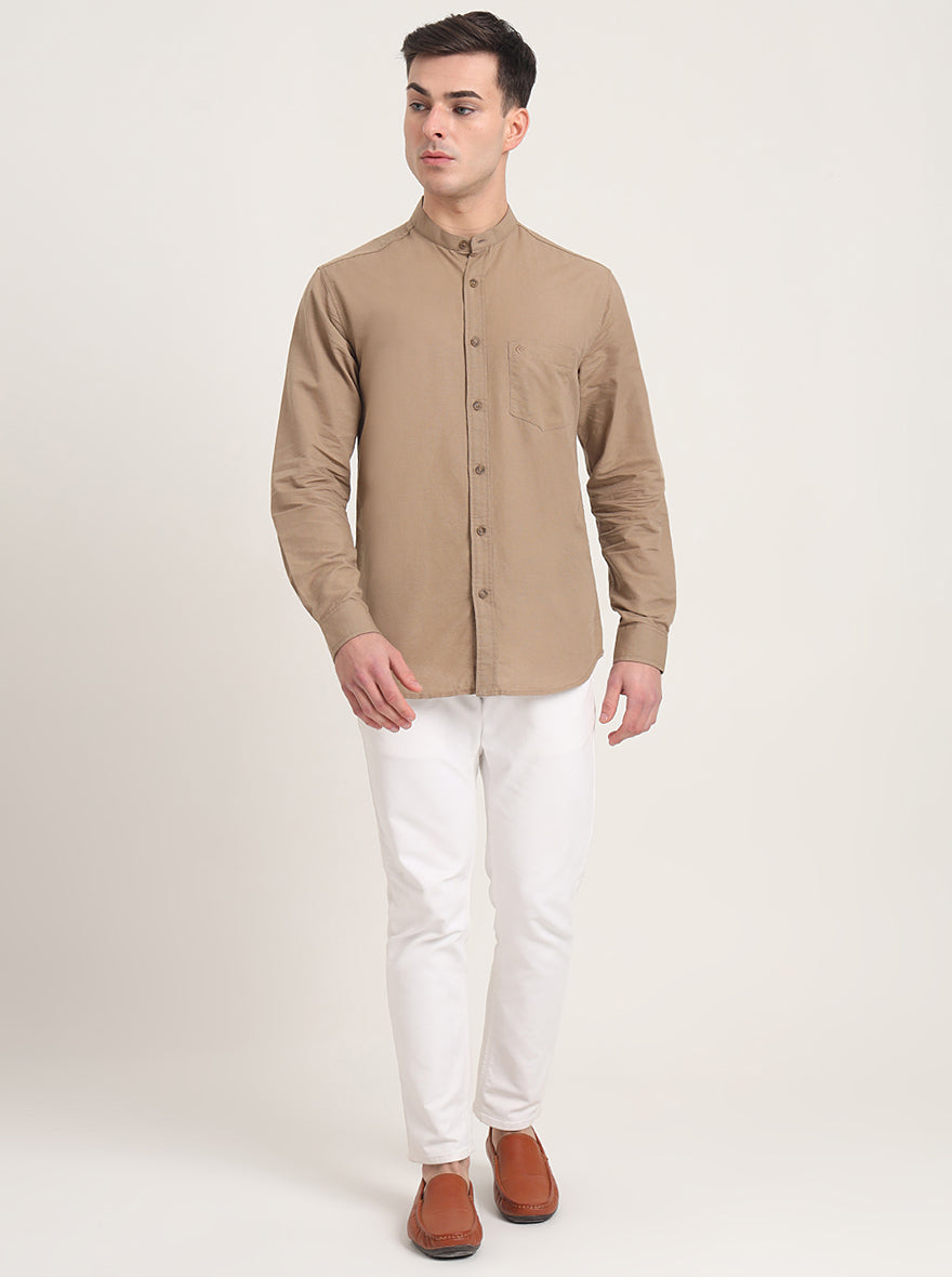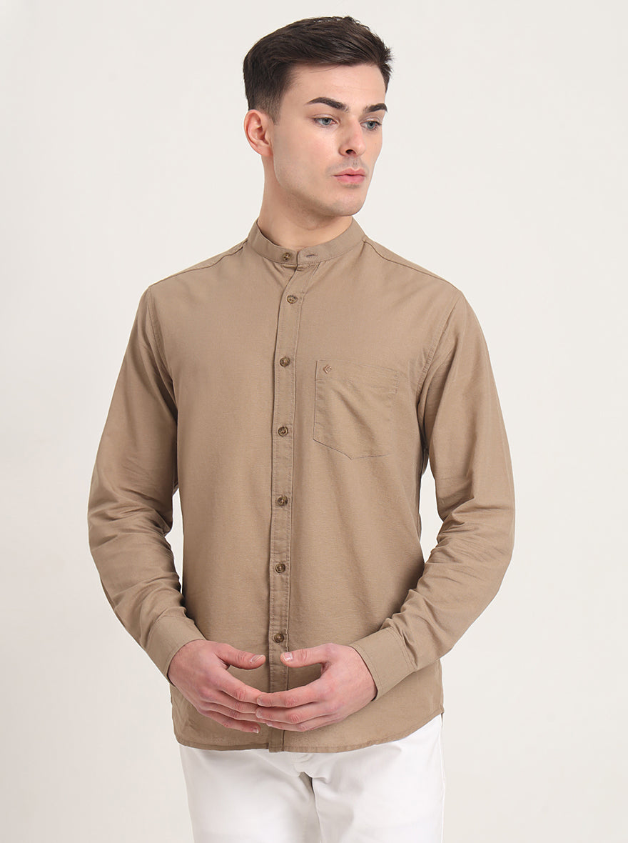 Khaki Solid Slim Fit Casual Shirt | Greenfibre