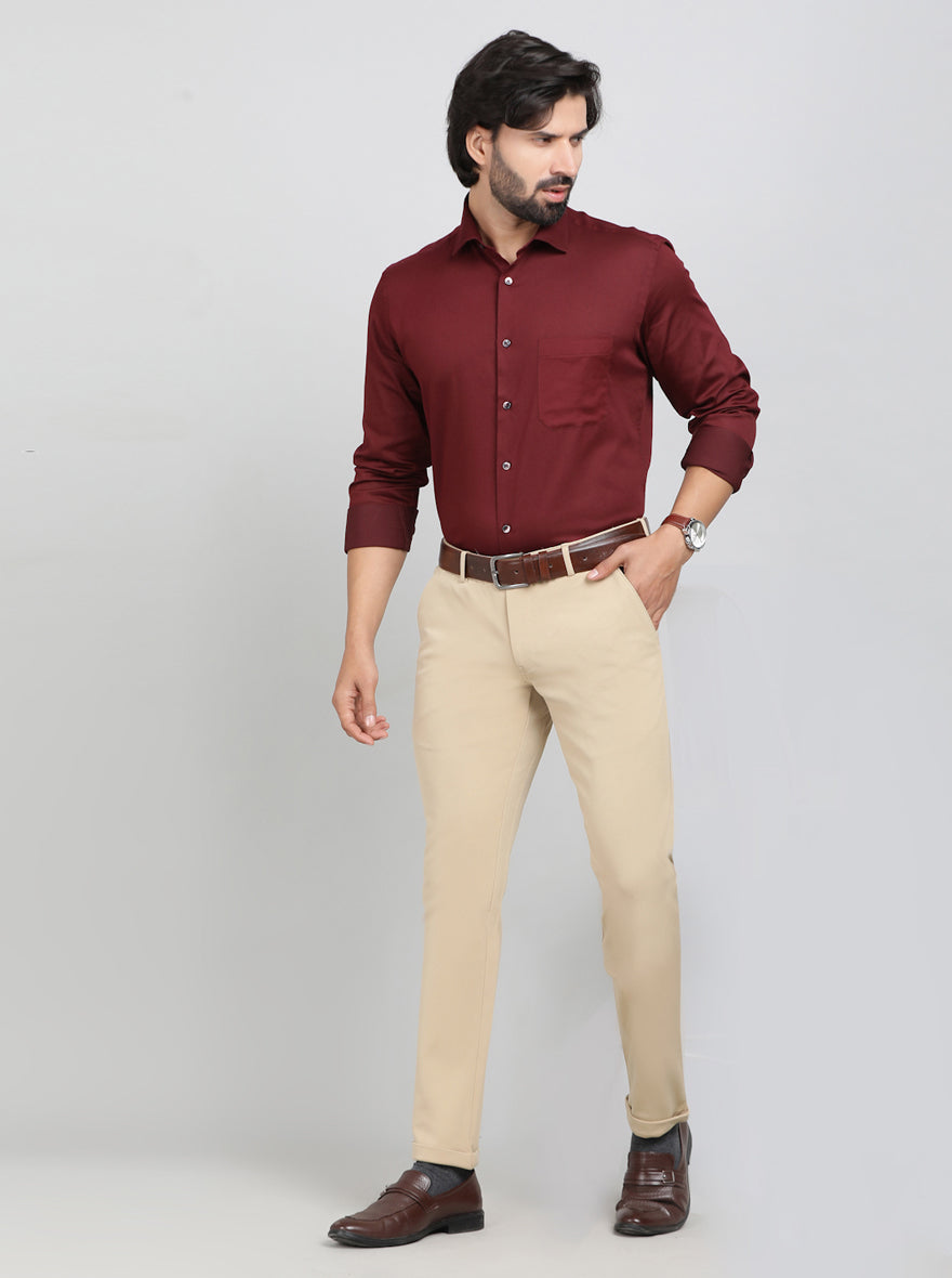 Khaki Solid Slim Fit Club Wear Trouser | Greenfibre