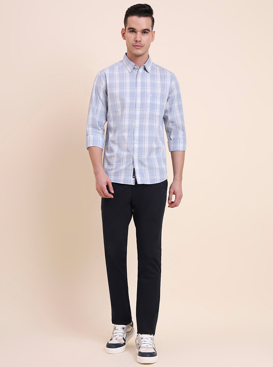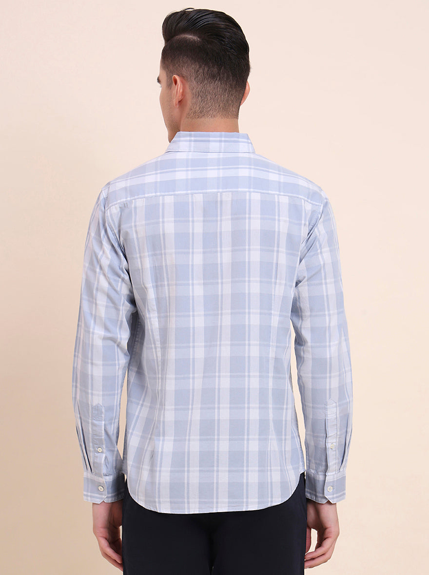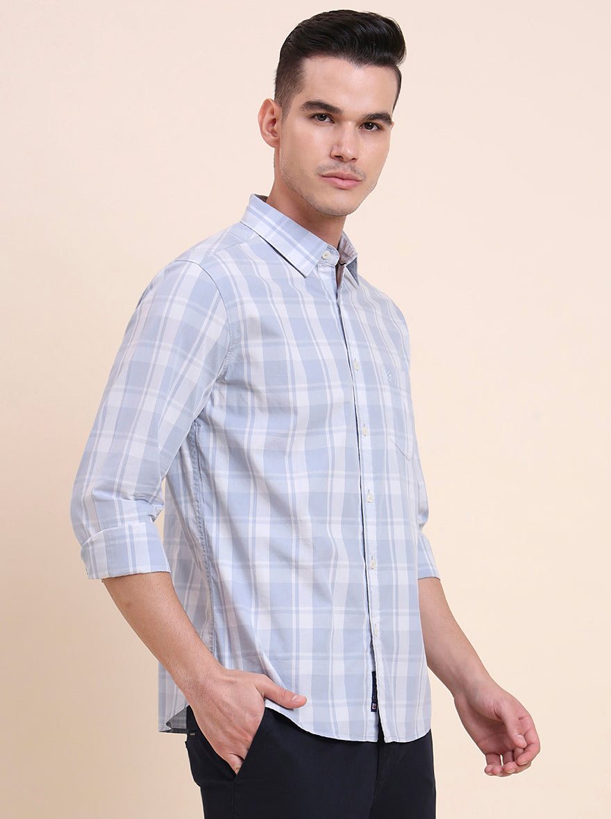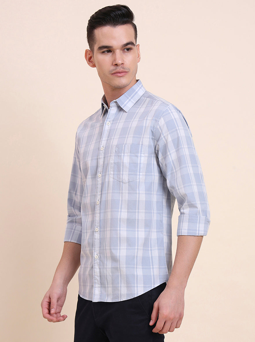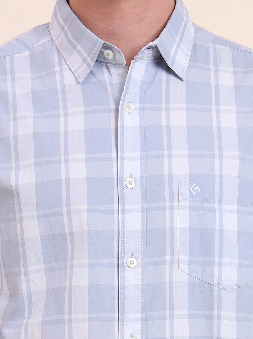 Light Blue Checked Slim Fit Casual Shirt | Greenfibre