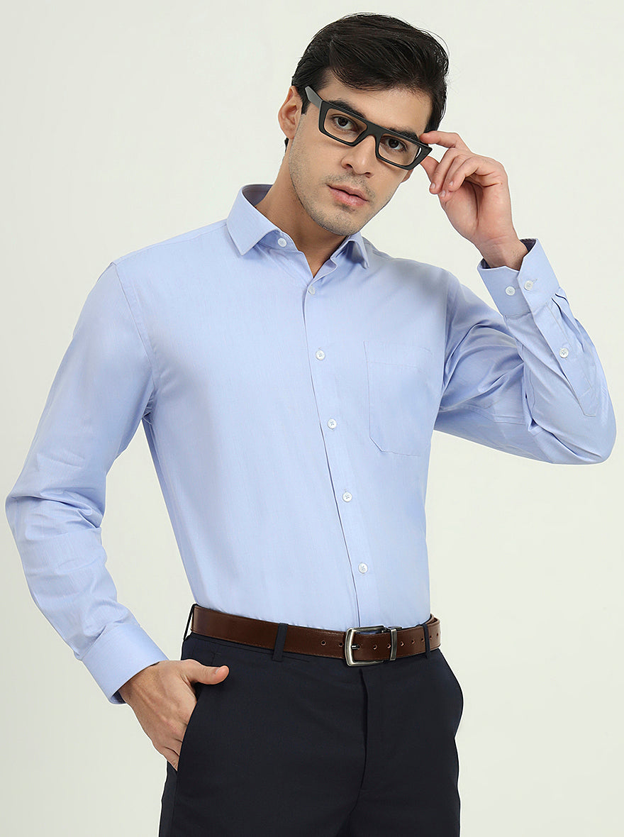 Light Blue Solid Regular Fit Formal Shirt | Greenfire