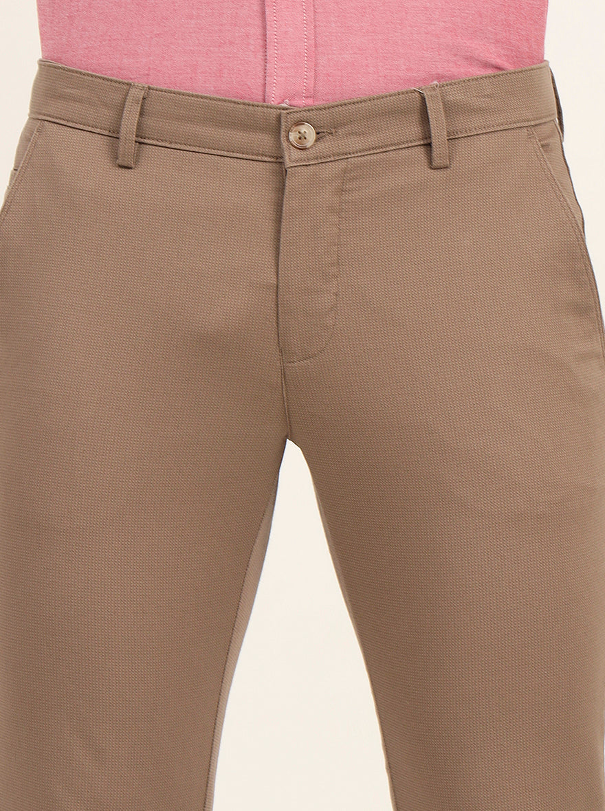 Light Brown Printed Super Slim Fit Casual Trouser | Greenfibre