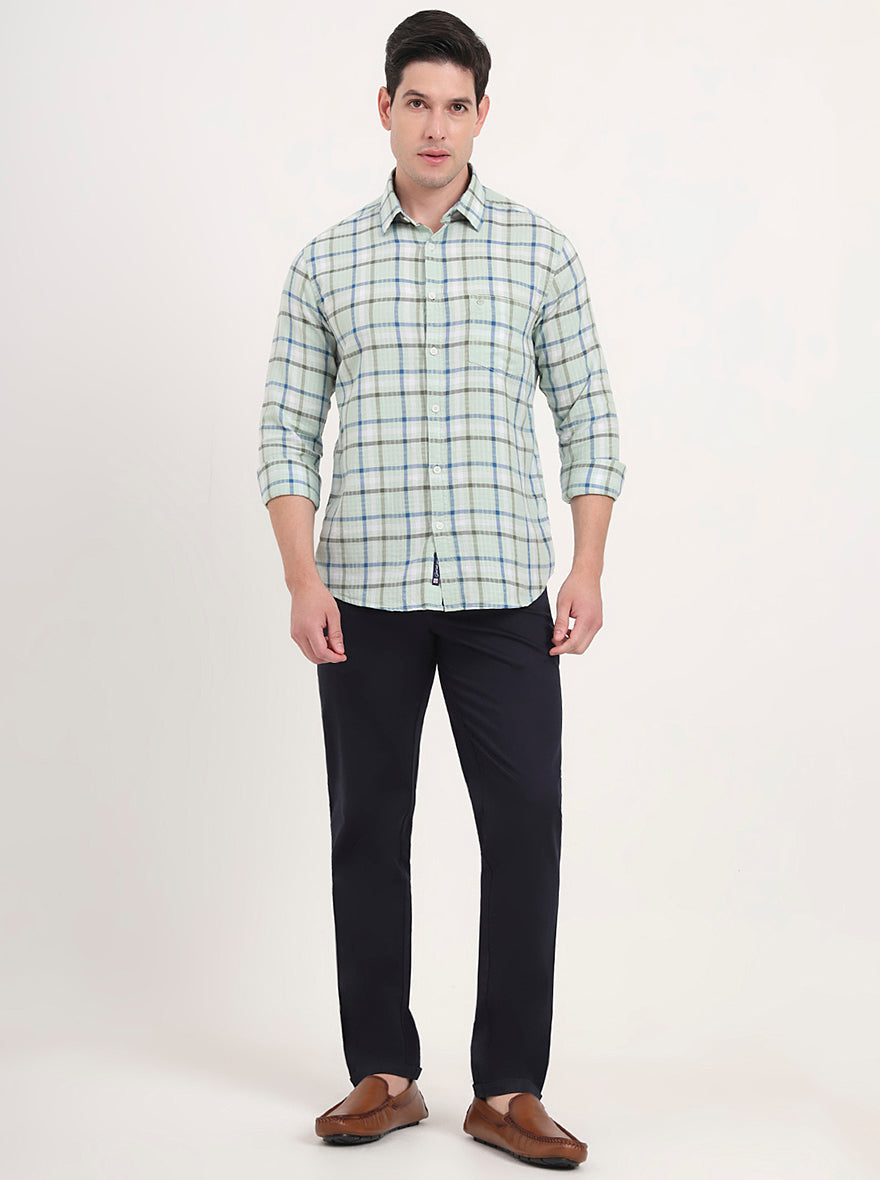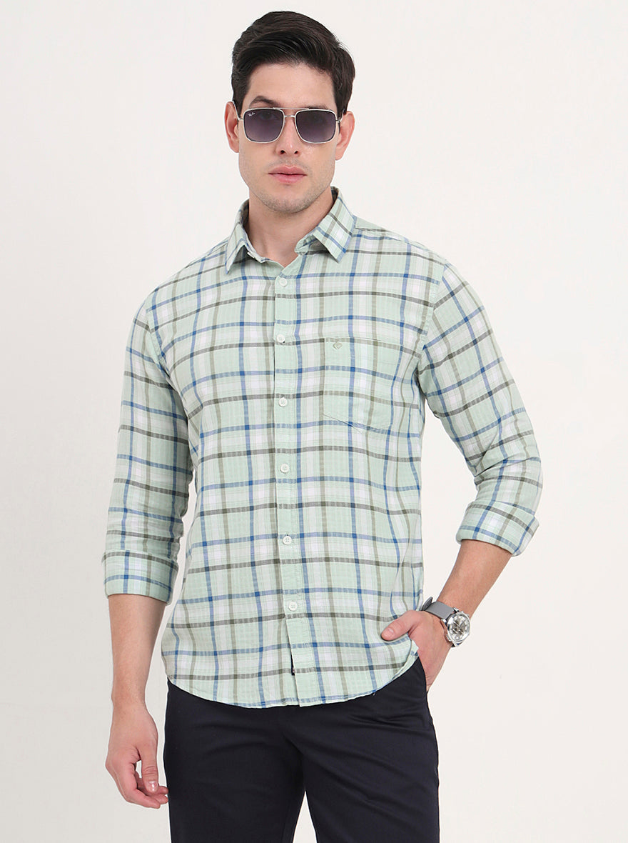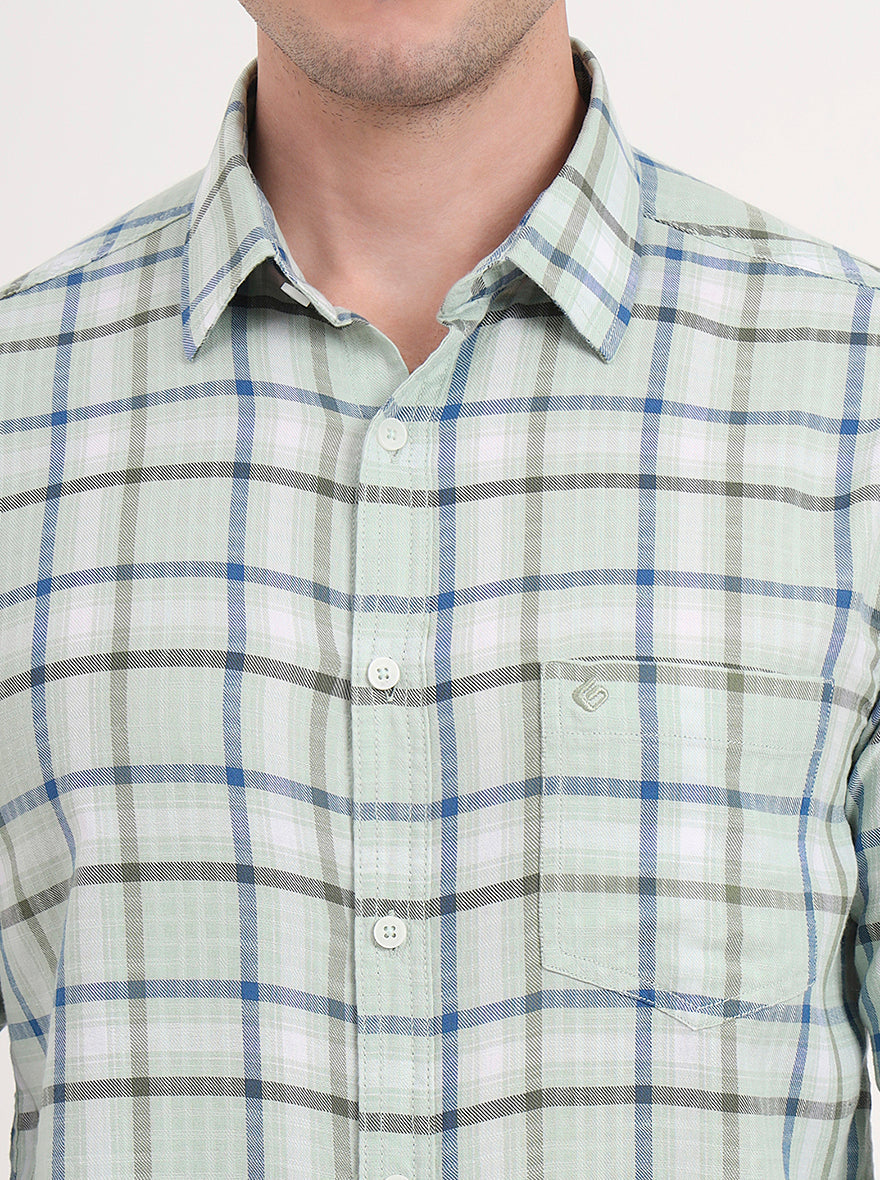 Light Green Checked Slim Fit Casual Shirt | Greenfibre