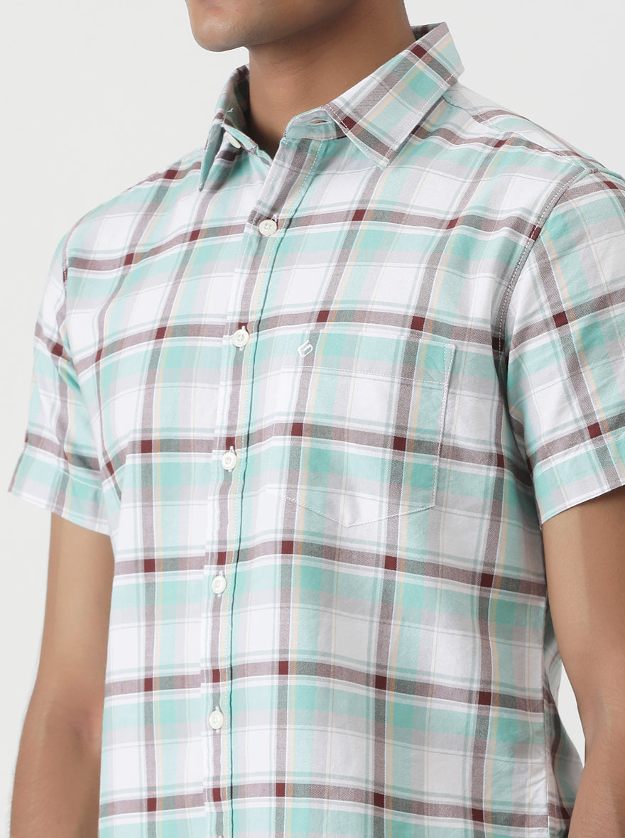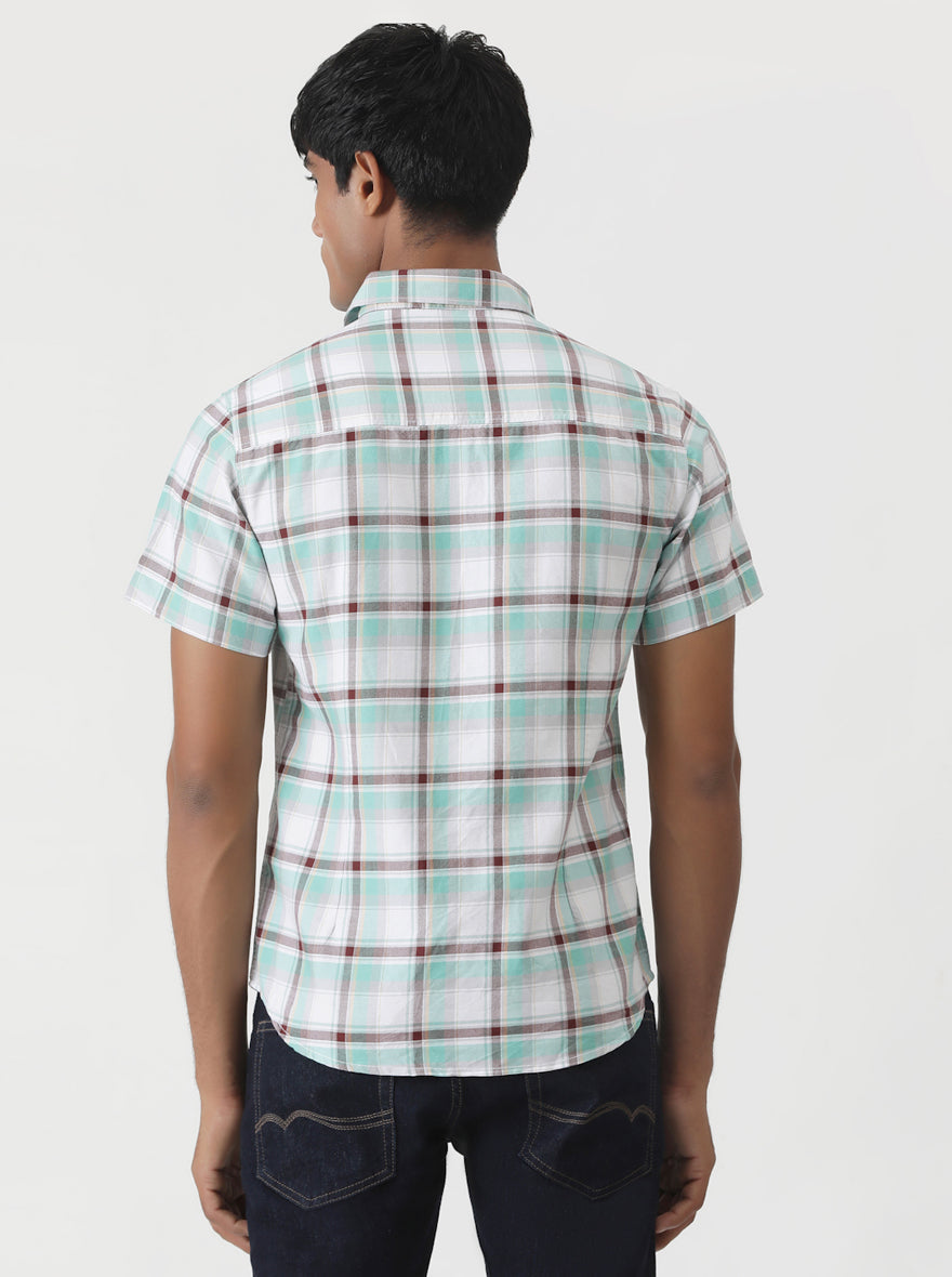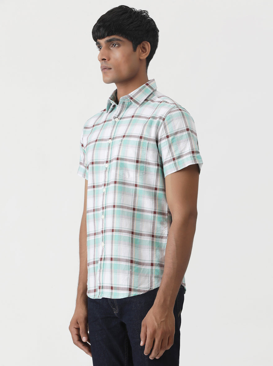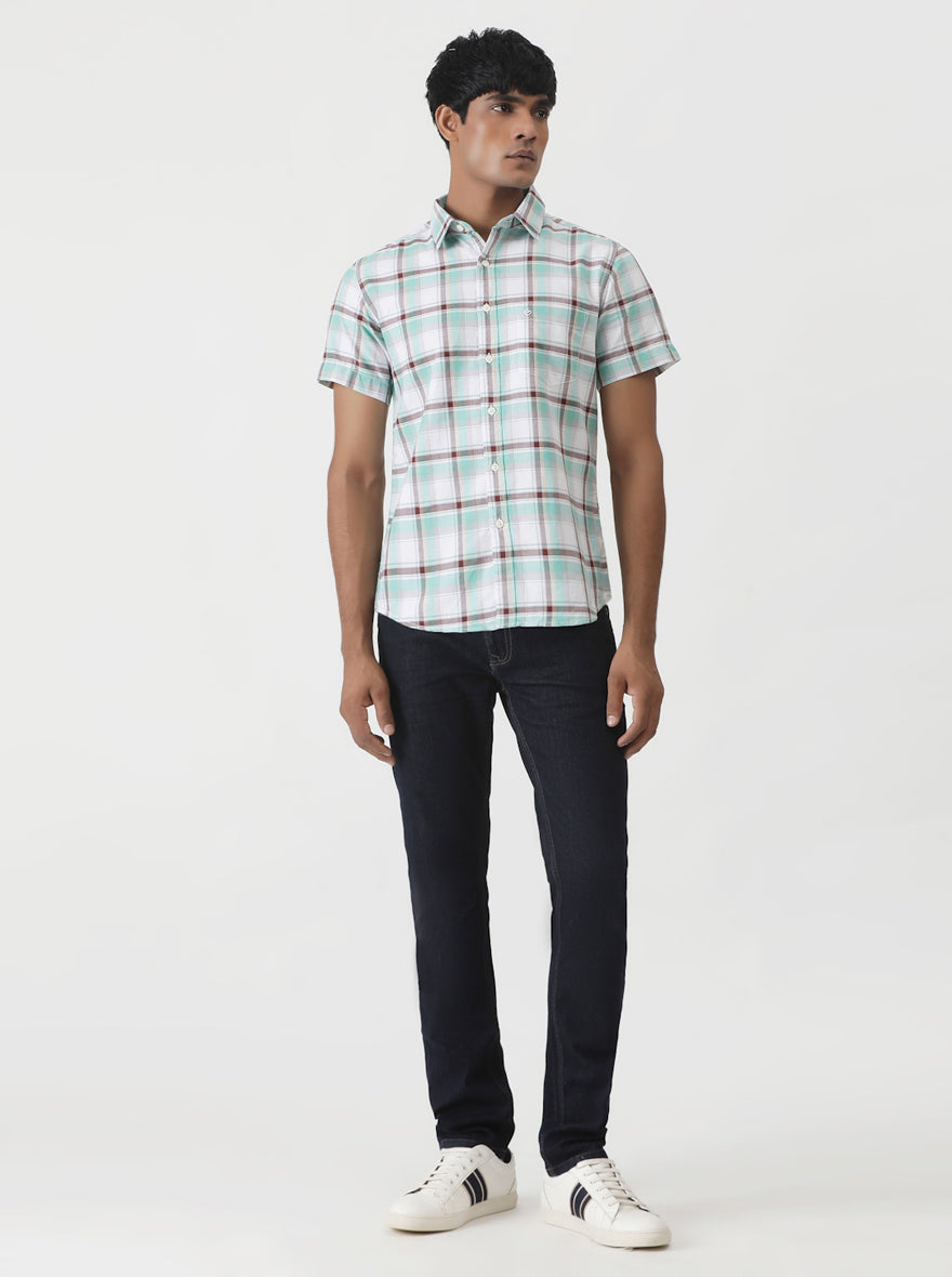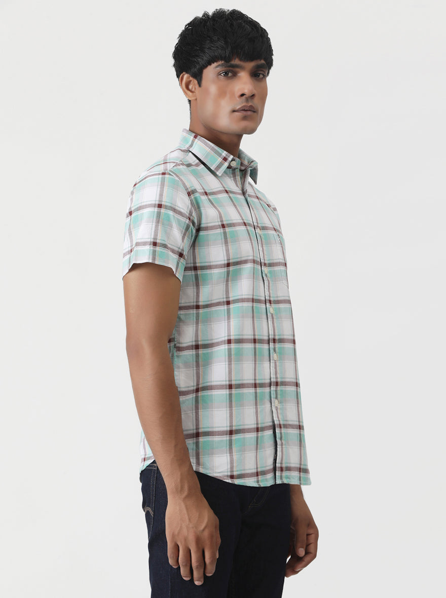 Light Green Checked Slim Fit Casual Shirt | Greenfibre