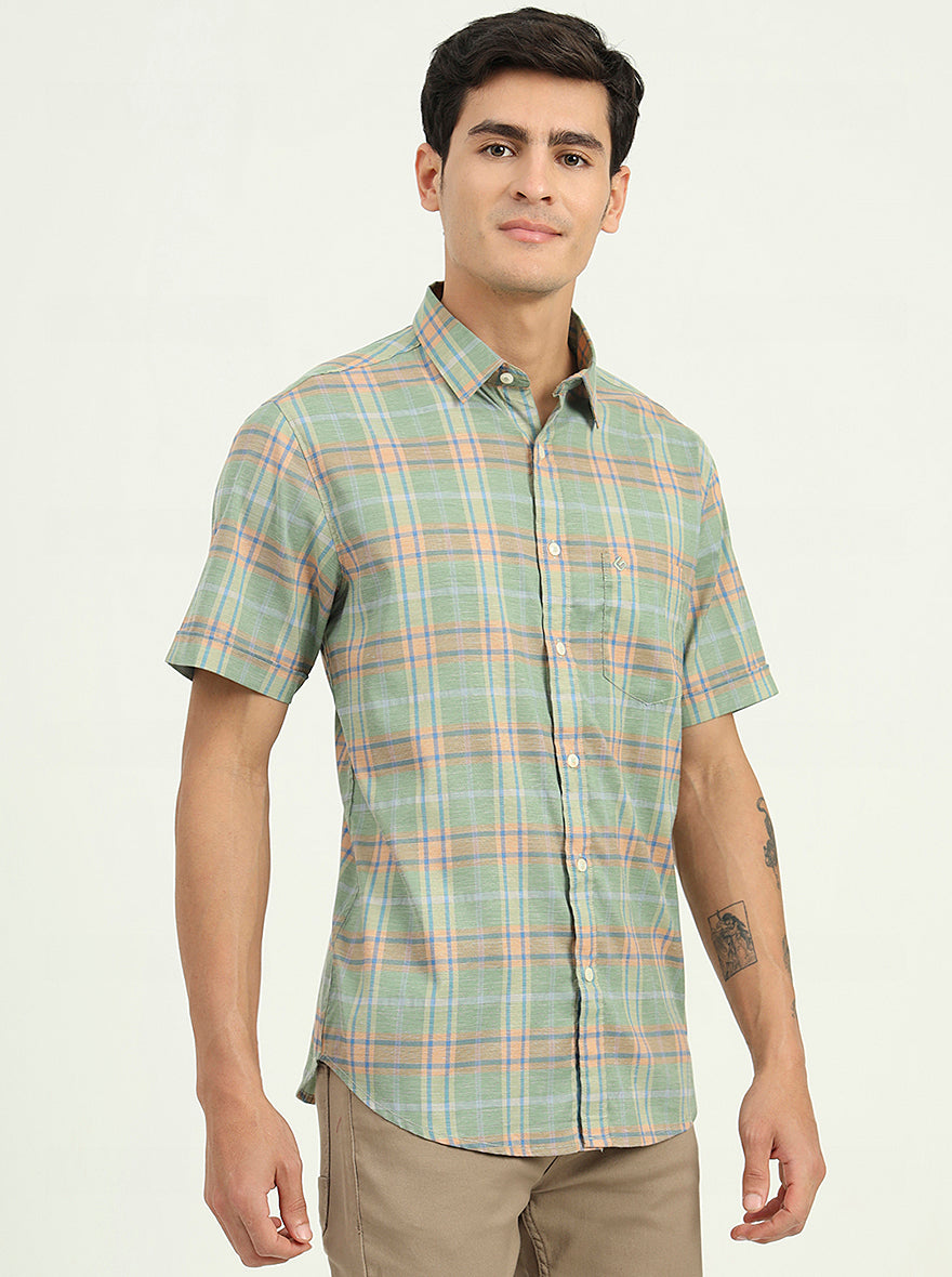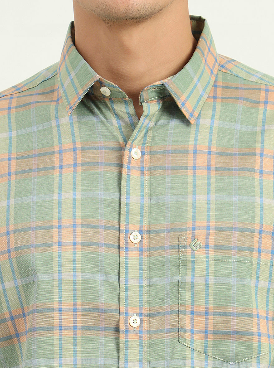 Light Green Checked Slim Fit Casual Shirt | Greenfibre