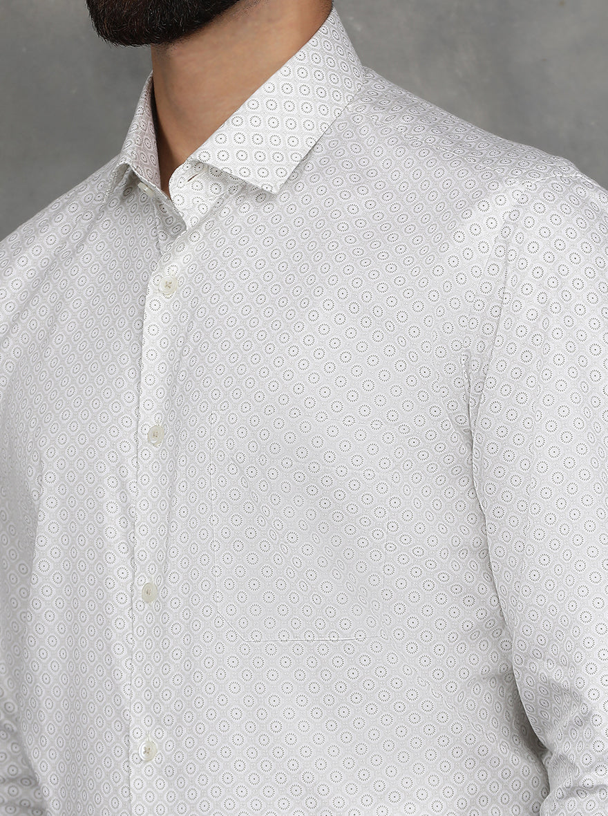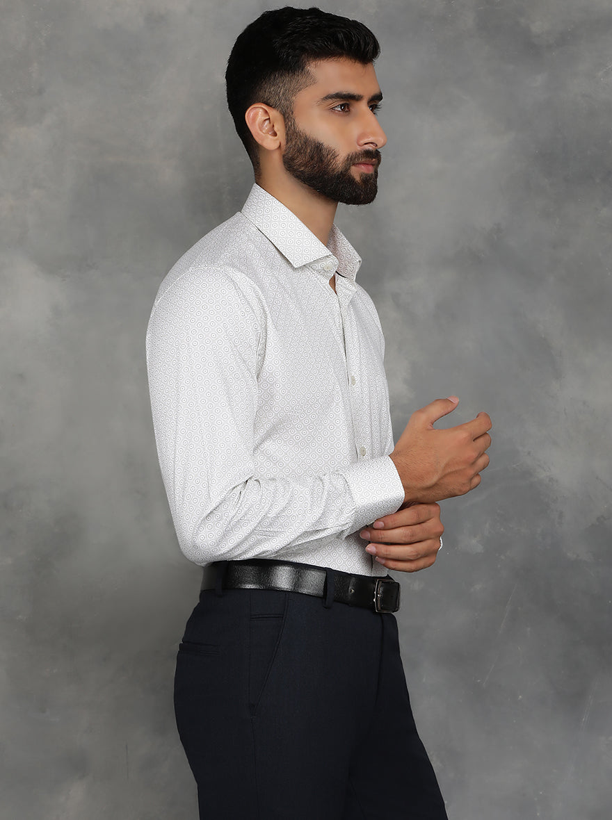 Light Green Printed Slim Fit Formal Shirt | GreenFibre