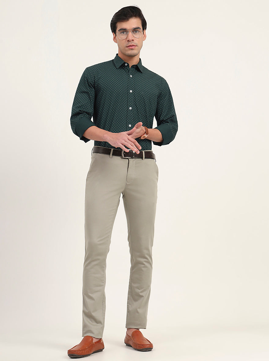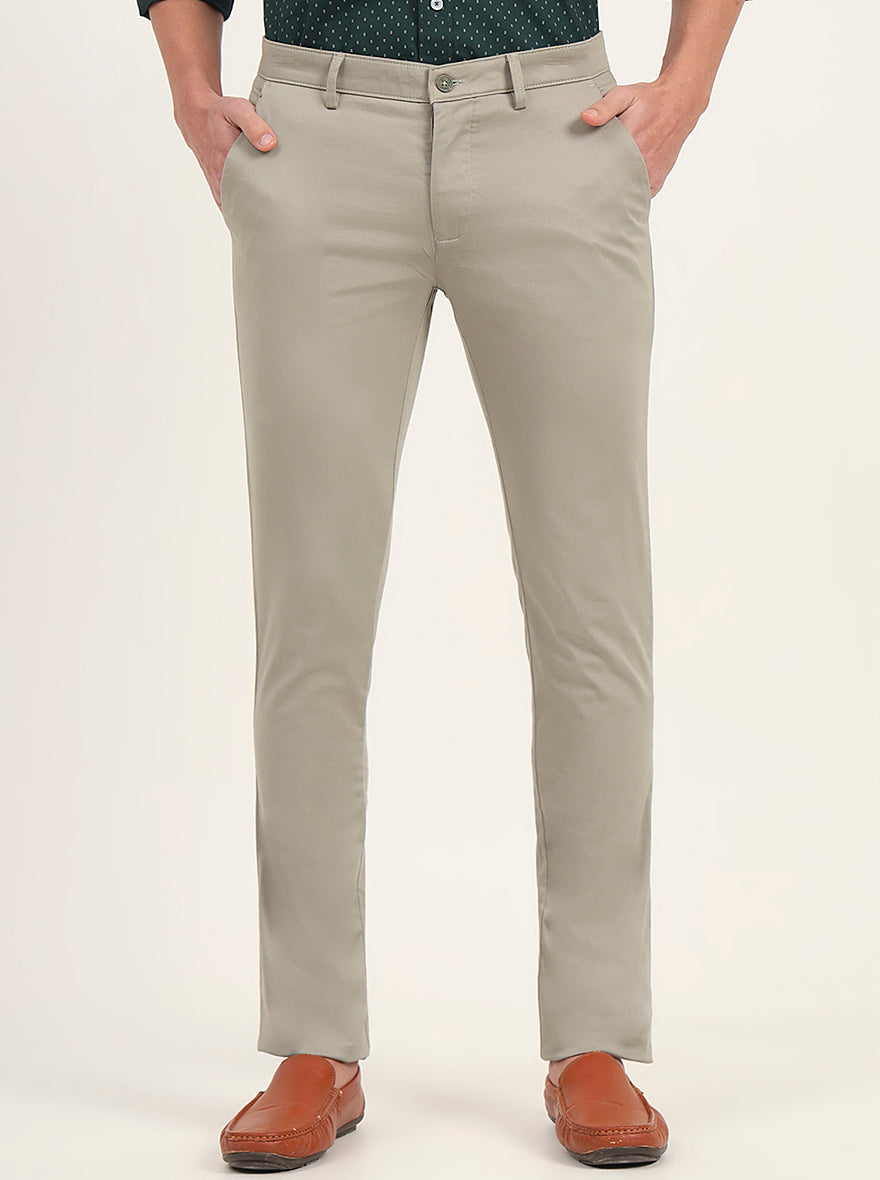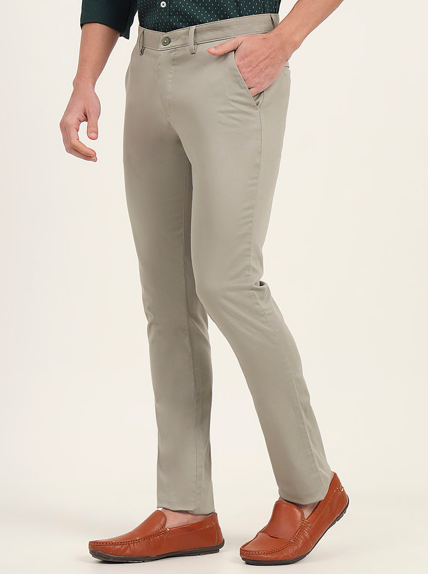 Light Green Solid Super Slim Fit Casual Trouser | Greenfibre