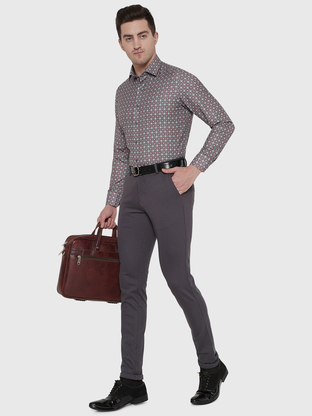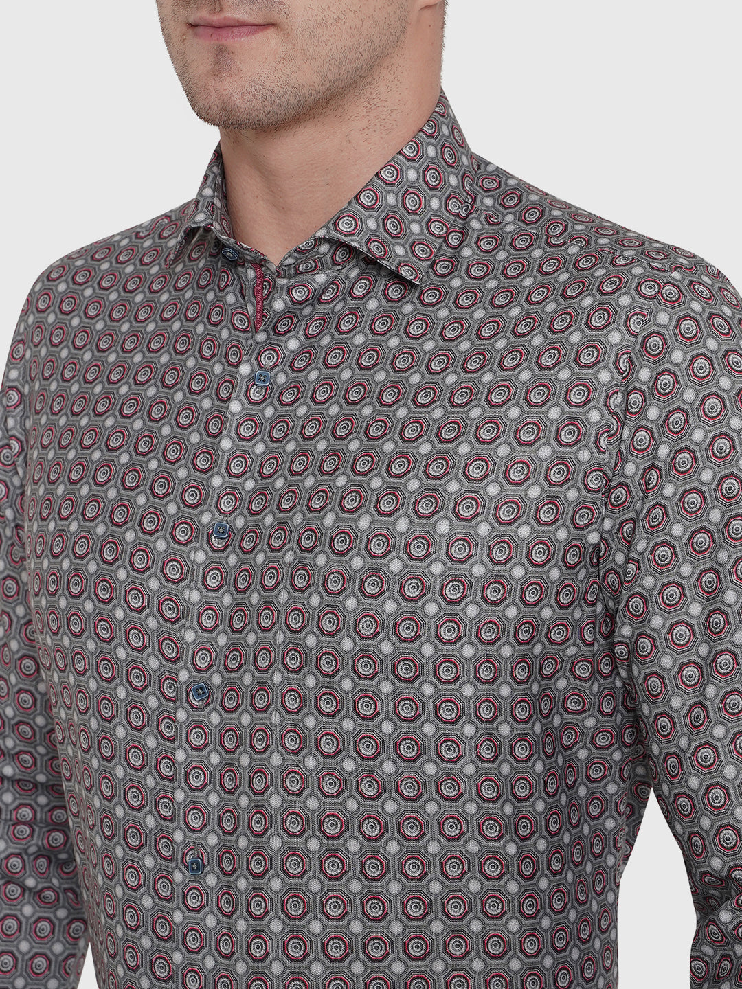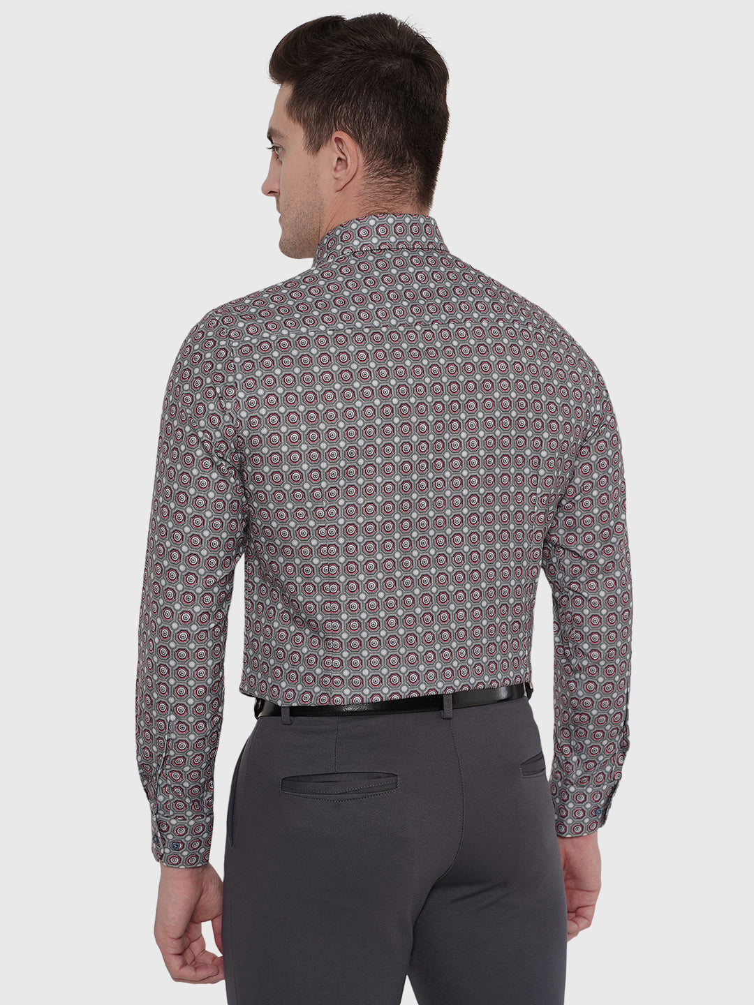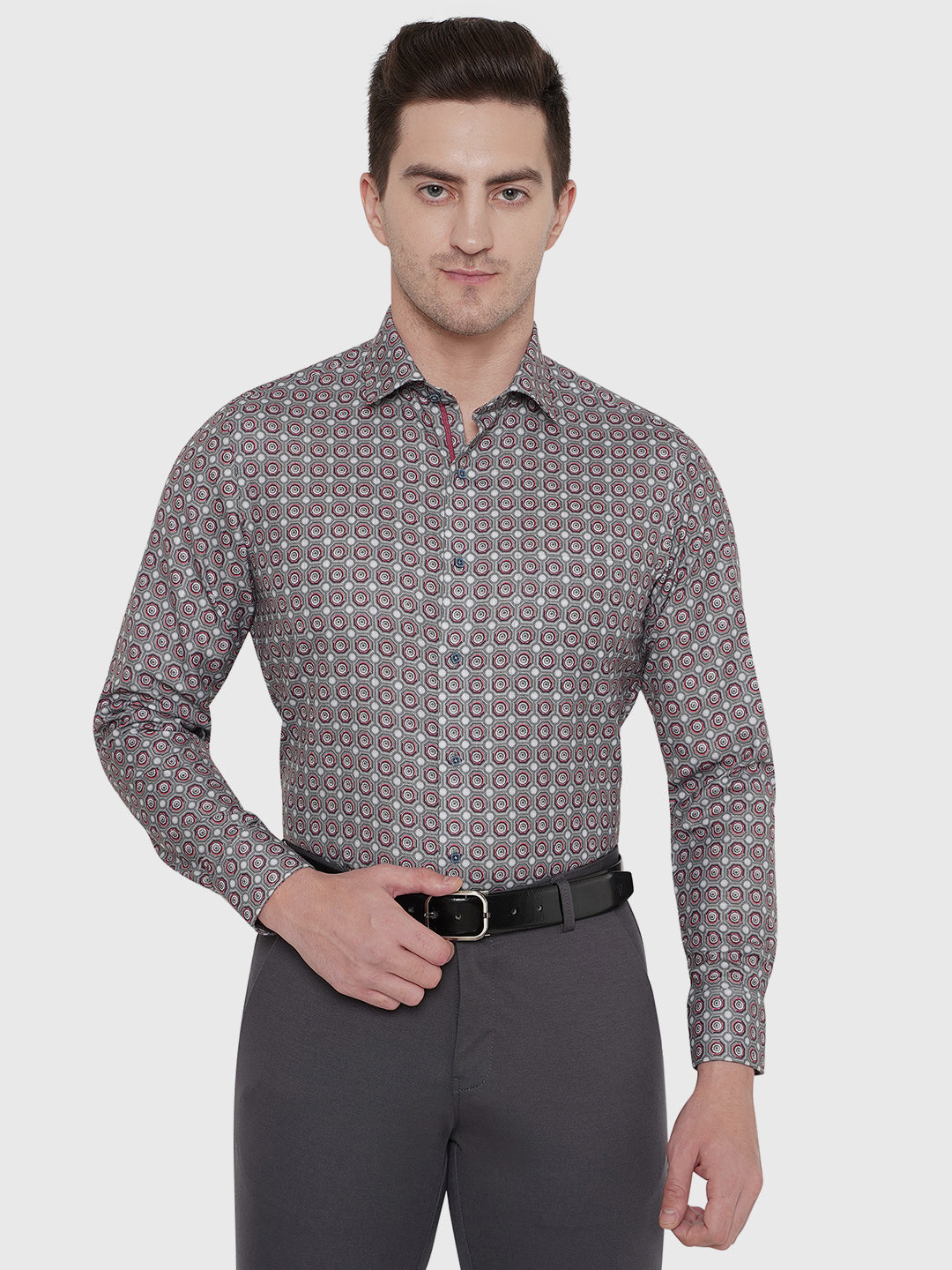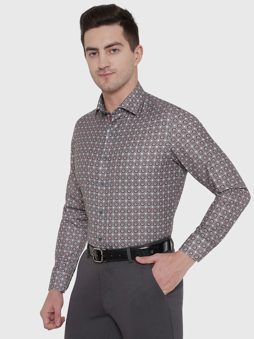 Details: Greenfibre Men's Light Grey Printed Slim Fit Party Wear Shirt